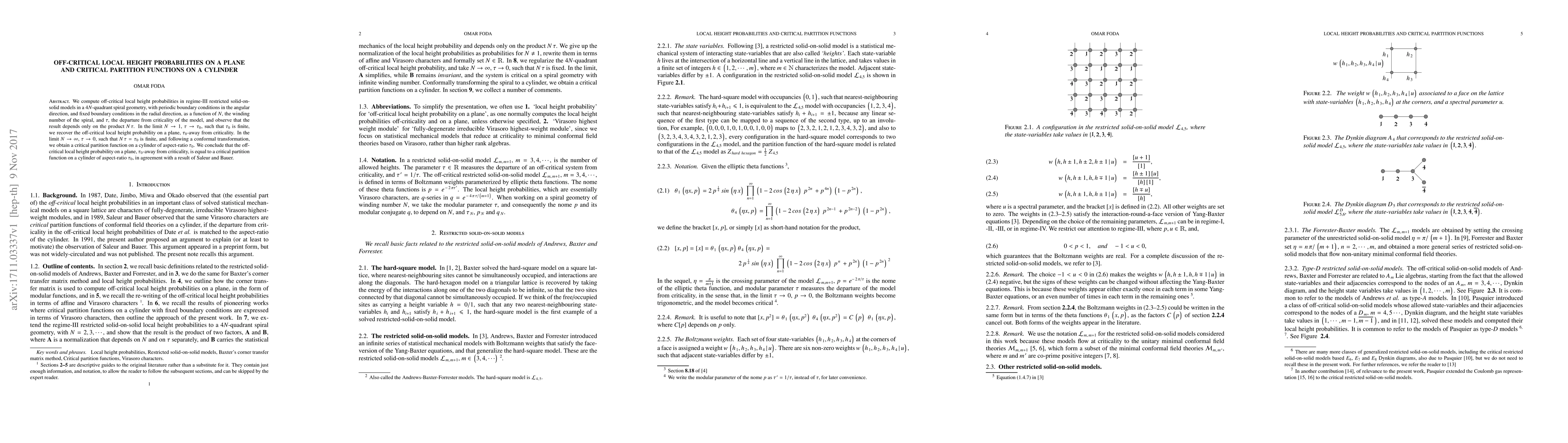 This research computes local height probabilities in a specific model and finds that they depend only on the product of N (spiral geometry) and δ (departure from criticality), with limits recovering off-critical probabilities on a plane and critical partition functions on a cylinder.