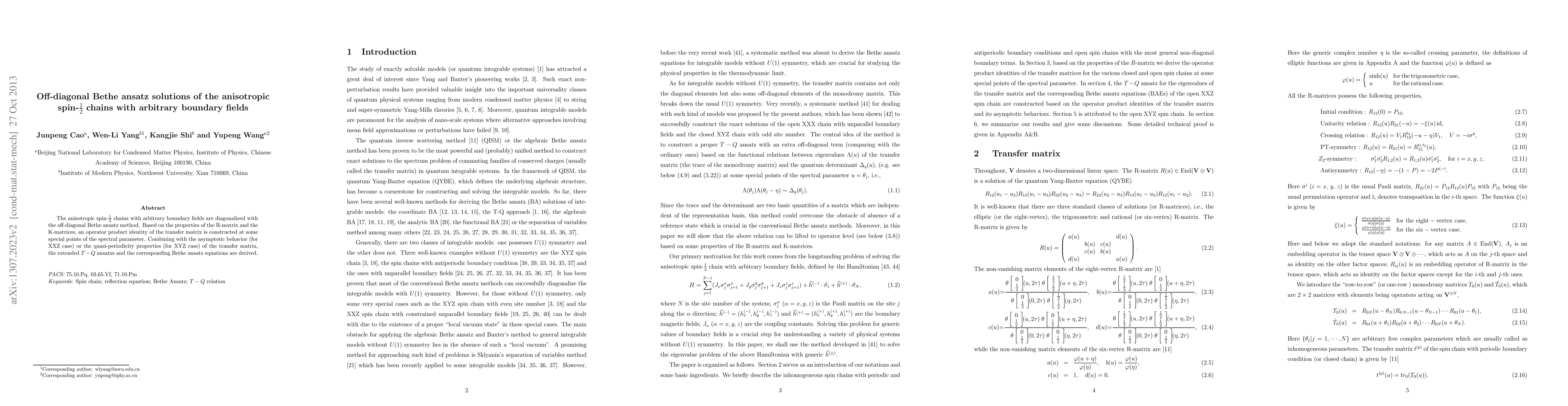 The anisotropic spin-1/2 chains with arbitrary boundary fields are diagonalized with the off-diagonal Bethe ansatz method. Based on the properties of the R-matrix and the K-matrices, an operator product identity of the transfer matrix is constructed at some special points of the spectral parameter. Combining with the asymptotic behavior (for XXZ case) or the quasi-periodicity properties (for XYZ case) of the transfer matrix, the extended T-Q ansatzs and the corresponding Bethe ansatz equations are derived.