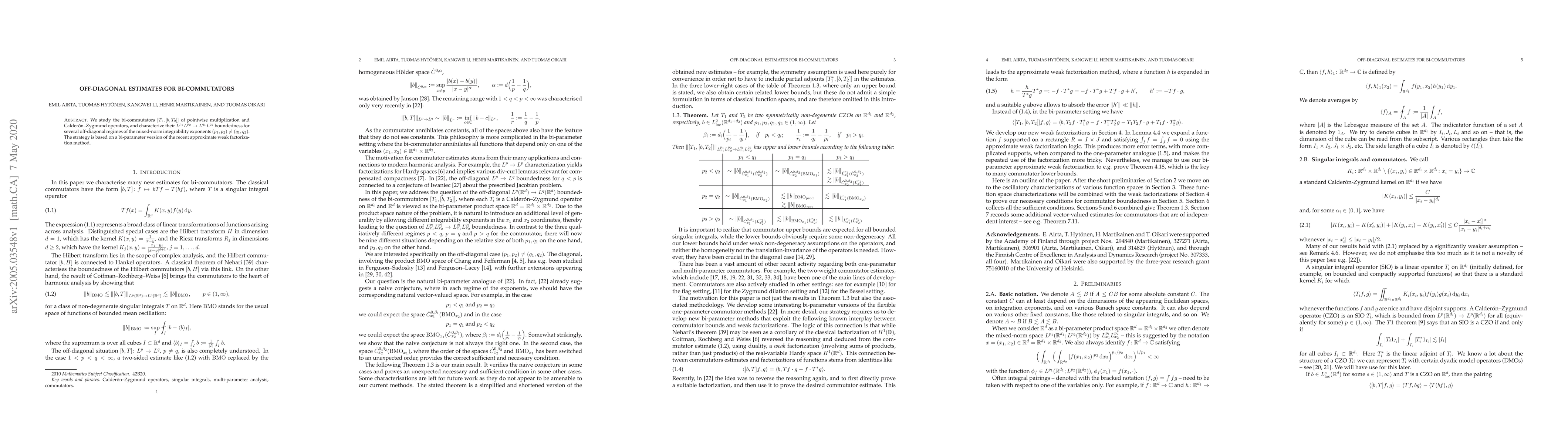 We study the bi-commutators $[T_1, [b, T_2]]$ of pointwise multiplication and Calder\'on-Zygmund operators, and characterize their $L^{p_1}L^{p_2} \to L^{q_1}L^{q_2}$ boundedness for several off-diagonal regimes of the mixed-norm integrability exponents $(p_1,p_2)\neq(q_1,q_2)$. The strategy is based on a bi-parameter version of the recent approximate weak factorization method.