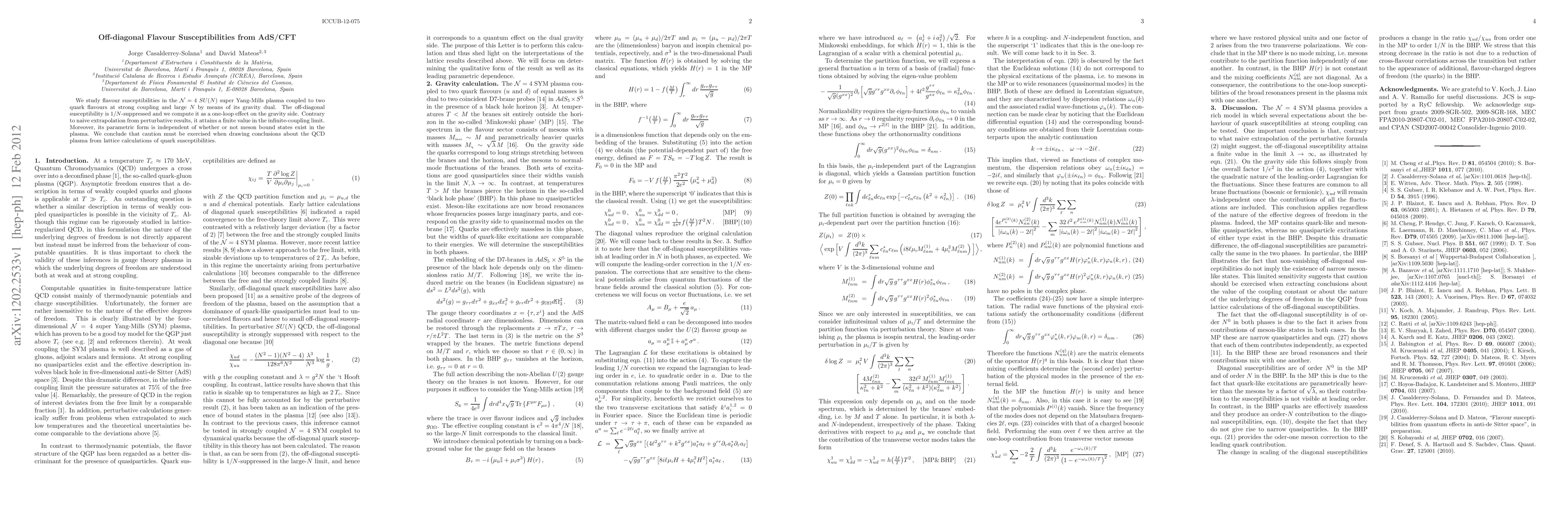 This paper investigates off-diagonal flavour susceptibilities in strongly coupled ${\cal N}=4$ SU(N) super Yang-Mills plasma using AdS/CFT duality, finding that the susceptibility is finite in the infinite-coupling limit and independent of meson states, cautioning against direct extrapolation from lattice QCD calculations.