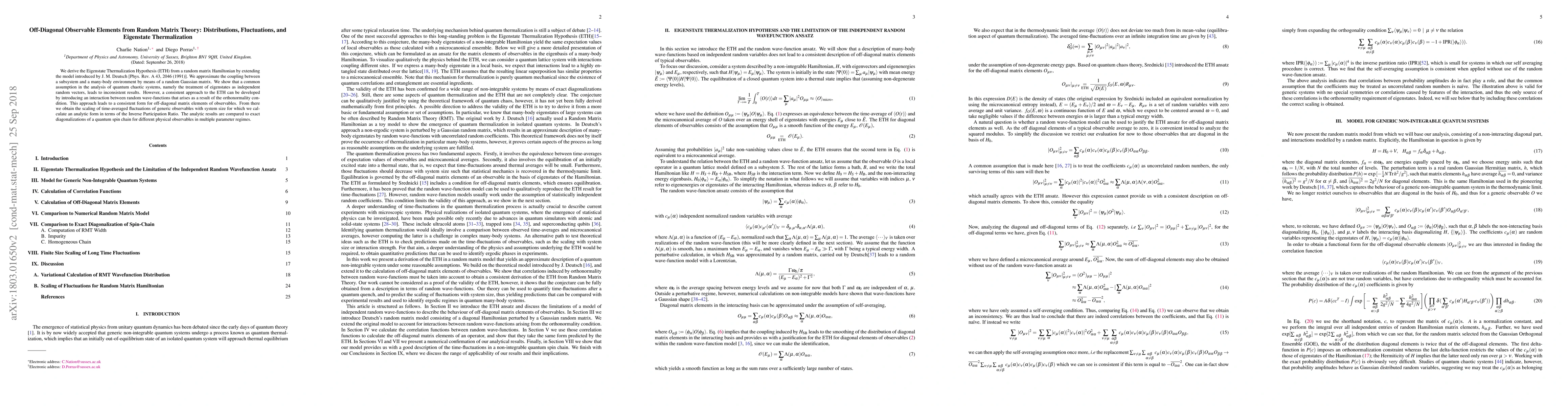 This paper derives the Eigenstate Thermalization Hypothesis (ETH) from a random matrix Hamiltonian, showing that the orthonormality condition introduces an interaction that leads to a consistent treatment of off-diagonal observable elements. The study compares analytic results for time-averaged fluctuations to exact diagonalizations of a quantum spin chain.