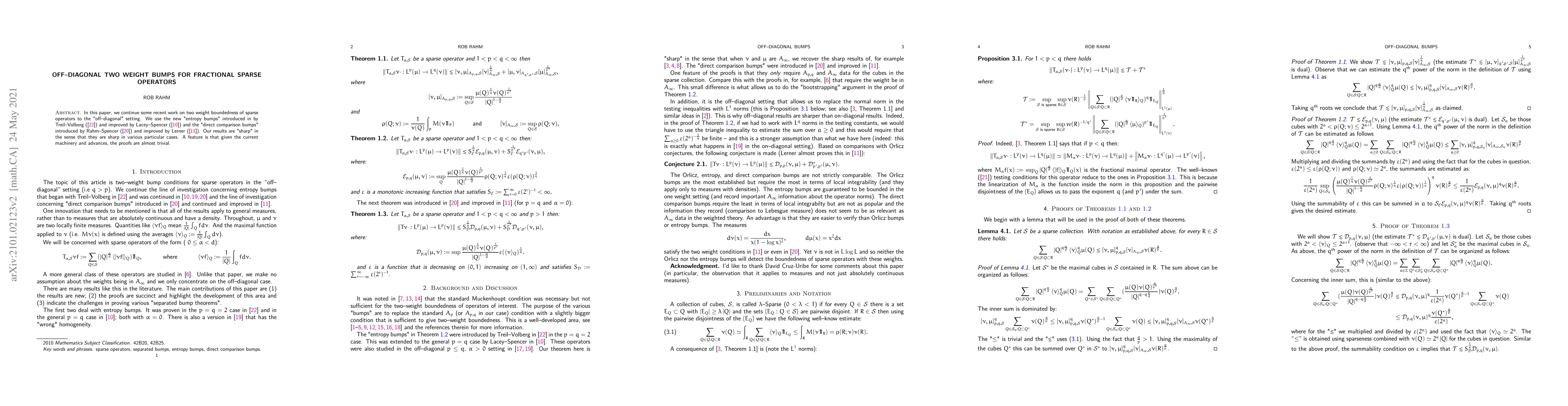 In this paper, we continue some recent work on two weight boundedness of sparse operators to the "off-diagonal" setting. We use the new "entropy bumps" introduced in by Treil-Volberg ([21]) and improved by Lacey-Spencer ([9]) and the "direct comparison bumps" introduced by Rahm-Spencer ([19]) and improved by Lerner ([10]). Our results are "sharp" in the sense that they are sharp in various particular cases. A feature is that given the current machinery, the proofs are almost trivial.