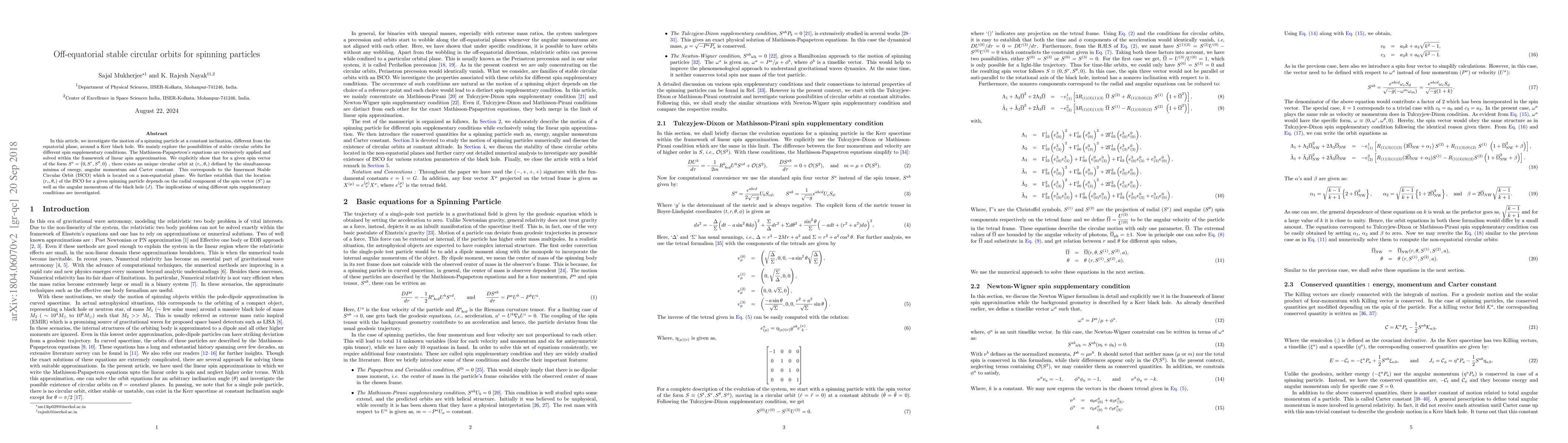 In this article, we investigate the motion of a spinning particle at a constant inclination, different from the equatorial plane, around a Kerr black hole. We mainly explore the possibilities of stable circular orbits for different spin supplementary conditions. The Mathission-Papapetrau's equations are extensively applied and solved within the framework of linear spin approximation. We explicitly show that for a given spin vector of the form $S^{a} = \left(0,S^r,S^{\theta},0\right)$ , there exists an unique circular orbit at $(r_c,\theta_c)$ defined by the simultaneous minima of energy, angular momentum and Carter constant. This corresponds to the Innermost Stable Circular Orbit (ISCO) which is located on a non-equatorial plane. We further establish that the location ($r_c,\theta_c$) of the ISCO for a given spinning particle depends on the radial component of the spin vector ($S^r$) as well as the angular momentum of the black hole ($J$). The implications of using different spin supplementary conditions are investigated.