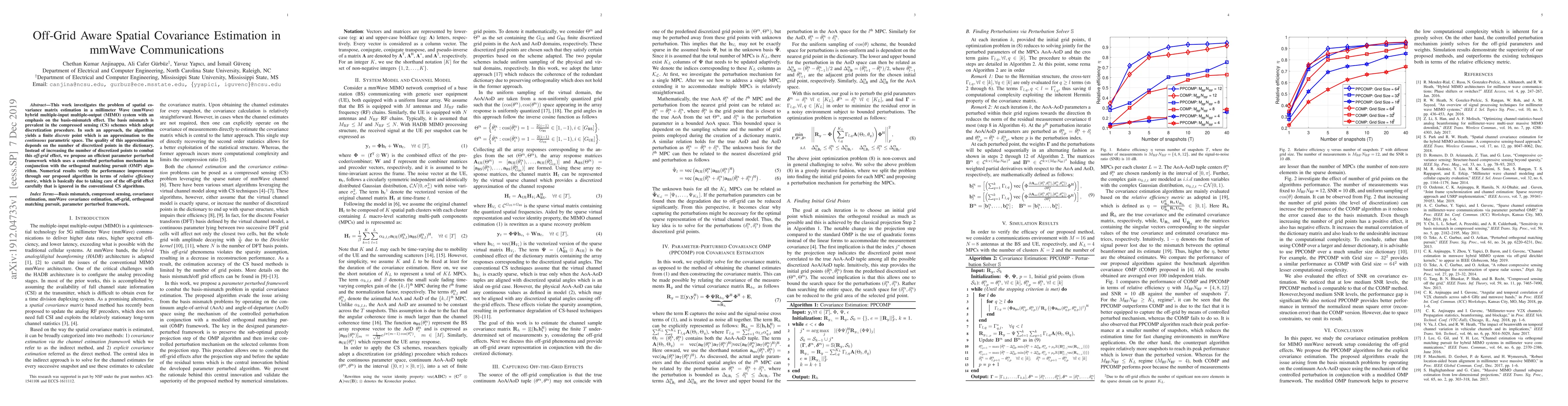 This work investigates the problem of spatial covariance matrix estimation in a millimeter-wave (mmWave) hybrid multiple-input multiple-output (MIMO) system with an emphasis on the basis-mismatch effect. The basis mismatch is prevalent in the compressed sensing (CS) schemes which adopt discretization procedure. In such an approach, the algorithm yields a finite discrete point which is an approximation to the continuous parametric space. The quality of this approximation depends on the number of discretized points in the dictionary. Instead of increasing the number of discretized points to combat this off-grid effect, we propose an efficient parameter perturbed framework which uses a controlled perturbation mechanism in conjunction with the orthogonal matching pursuit (OMP) algorithm. Numerical results verify the performance improvement through our proposed algorithm in terms of relative efficiency metric, which is basically due to taking care of the off-grid effect carefully that is ignored in the conventional CS algorithms.