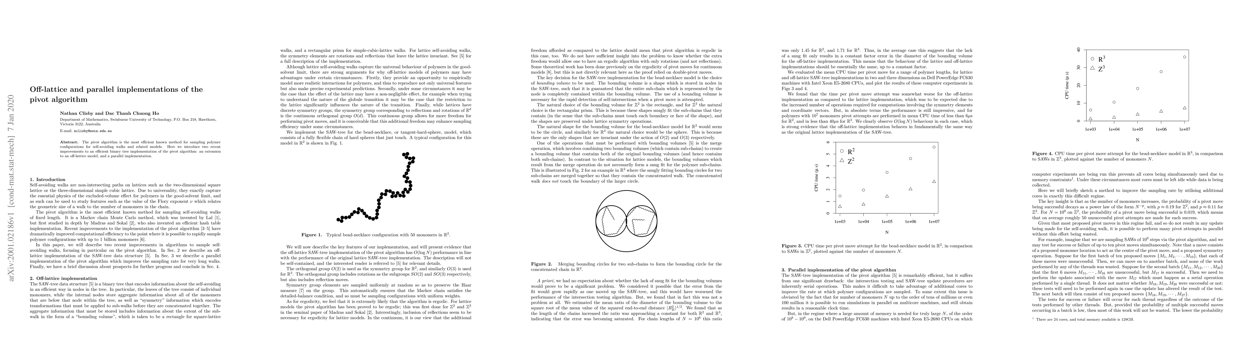 Summary: This paper enhances the pivot algorithm's efficiency for sampling polymer configurations by extending it to off-lattice models and introducing a parallel implementation, both of which improve computational performance.