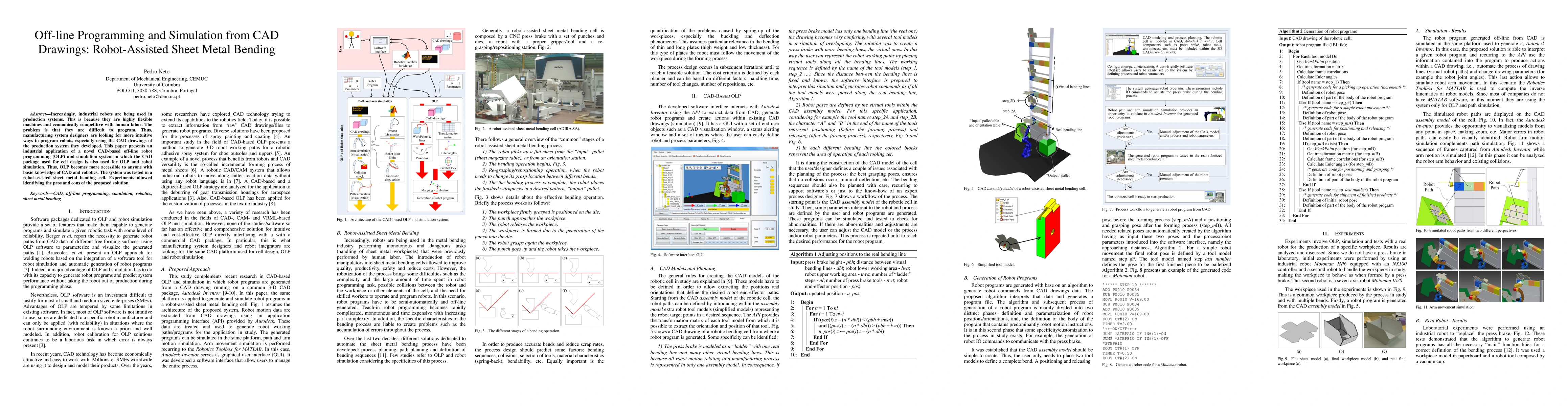 This paper presents a CAD-based off-line programming and simulation system for industrial robots, making programming more accessible through CAD knowledge. The system was tested in a robot-assisted sheet metal bending cell, revealing both advantages and challenges of the proposed approach.