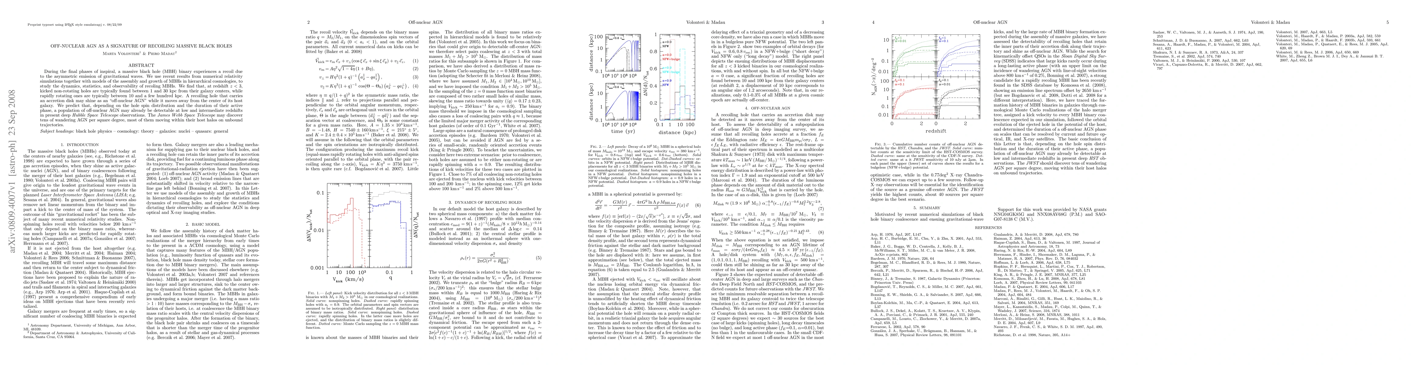 During the final phases of inspiral, a massive black hole (MBH) binary experiences a recoil due to the asymmetric emission of gravitational waves. We use recent results from numerical relativity simulations together with models of the assembly and growth of MBHs in hierarchical cosmologies, to study the dynamics, statistics, and observability of recoling MBHs. We find that, at redshift z<3, kicked non-rotating holes are typically found between 1 and 30 kpc from their galaxy centers, while rapidly rotating ones are typically between 10 and a few hundred kpc. A recoiling hole that carries an accretion disk may shine as an "off-nuclear AGN" while it moves away from the center of its host galaxy. We predict that, depending on the hole spin distribution and the duration of their active phase, a population of off-nuclear AGN may already be detectable at low and intermediate redshifts in present deep Hubble Space Telescope observations. The James Webb Space Telescope may discover tens of wandering AGN per square degree, most of them moving within their host halos on unbound trajectories.