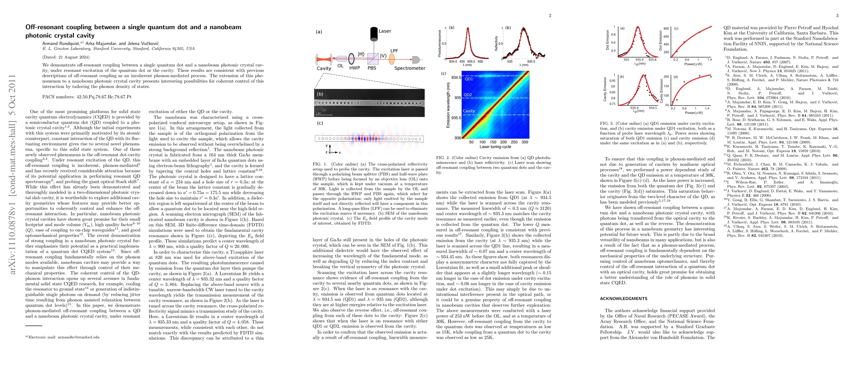 This paper demonstrates off-resonant coupling between a single quantum dot and a nanobeam photonic crystal cavity, confirming previous theories of phonon-mediated interactions. The findings suggest potential for enhanced coherent control through manipulation of phonon density.