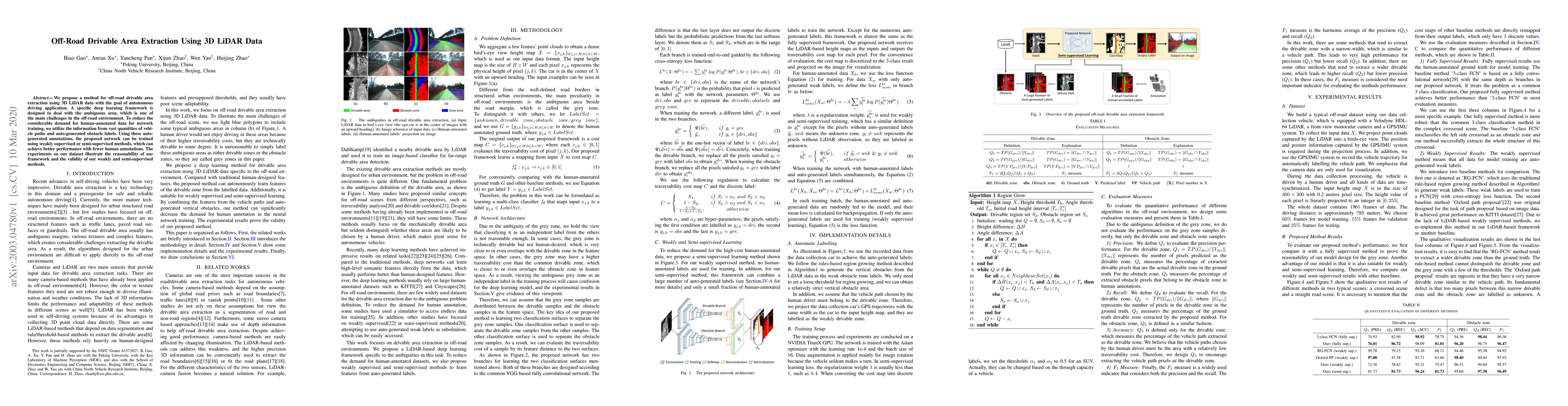 This paper proposes a deep learning framework for extracting off-road drivable areas using 3D LiDAR data, aiming to enhance autonomous driving applications. The method leverages vehicle paths and auto-generated obstacle labels to reduce the need for extensive human annotations, employing weakly and semi-supervised training to achieve better performance.