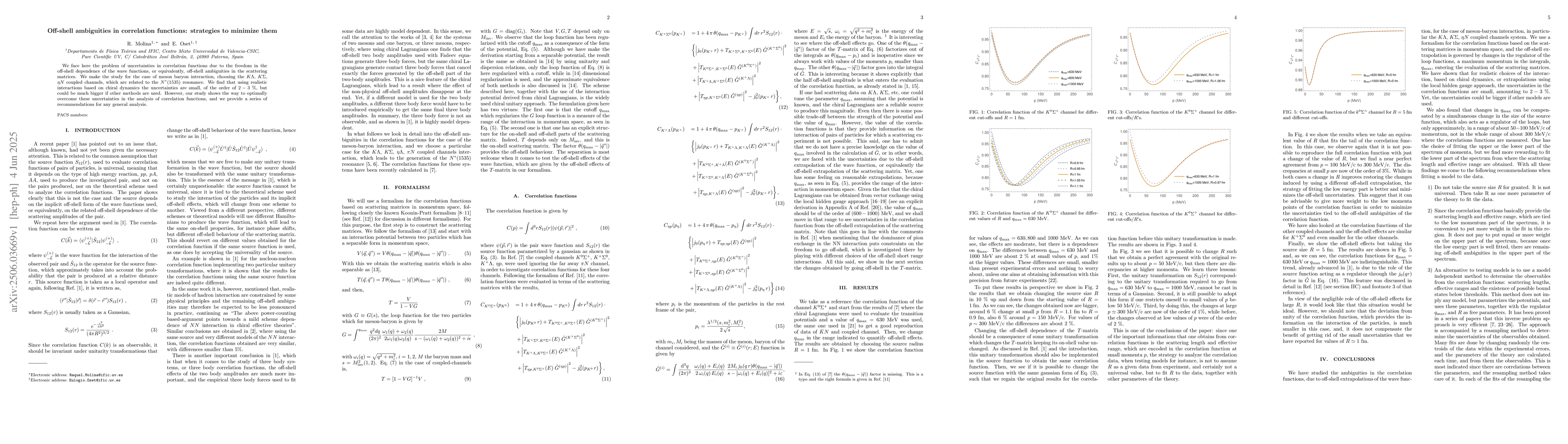 We face here the problem of uncertainties in correlation functions due to the freedom in the off-shell dependence of the wave functions, or equivalently, off-shell ambiguities in the scattering matrices. We make the study for the case of meson baryon interaction, choosing the $K\Lambda$, $K \Sigma$, $\eta N$ coupled channels, which are related to the $N^*(1535)$ resonance. We find that using realistic interactions based on chiral dynamics the uncertainties are small, of the order of $2-3$~\%, but could be much bigger if other methods are used. However, our study shows the way to optimally overcome these uncertainties in the analysis of correlation functions, and we provide a series of recommendations for any general analysis.