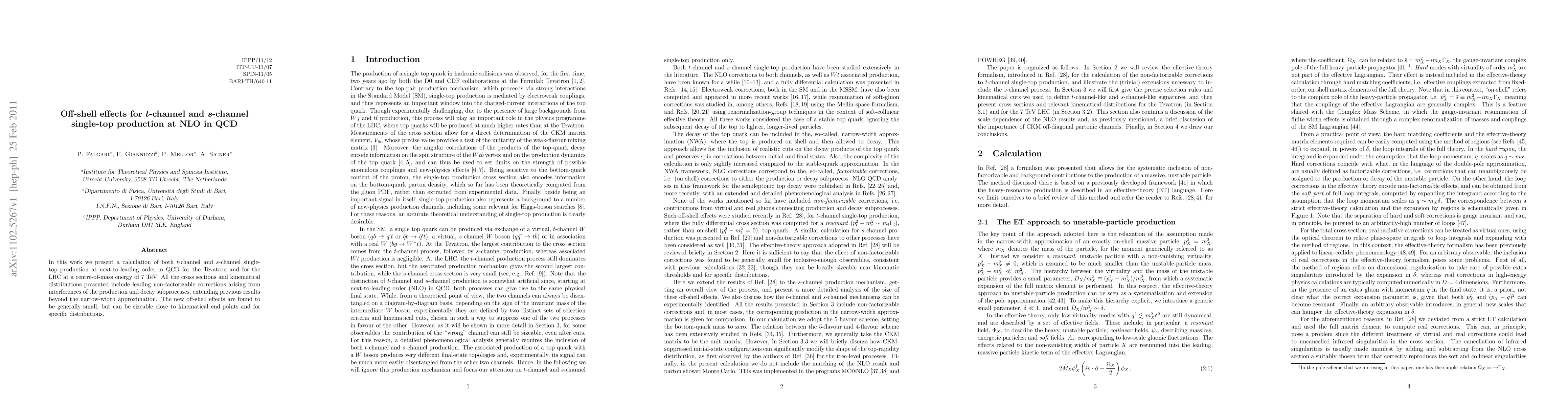 Researchers calculate next-to-leading order QCD effects for single-top production in both t-channel and s-channel processes at the Tevatron and LHC, finding that new off-shell effects can be sizeable near kinematical endpoints.