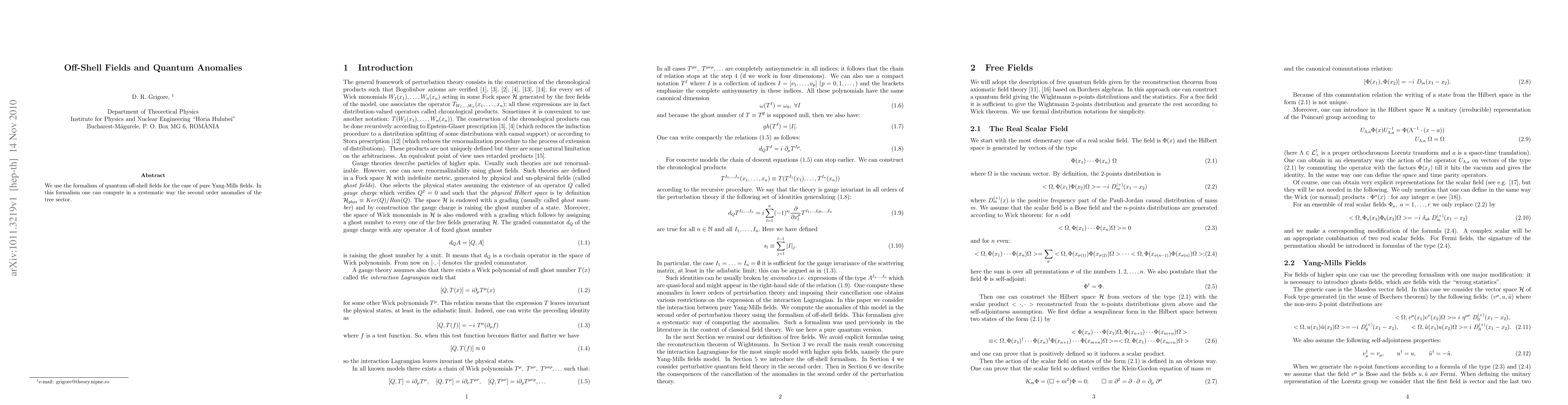 We use the formalism of quantum off-shell fields for the case of pure Yang-Mills fields. In this formalism one can compute in a systematic way the second order anomalies of the tree sector.