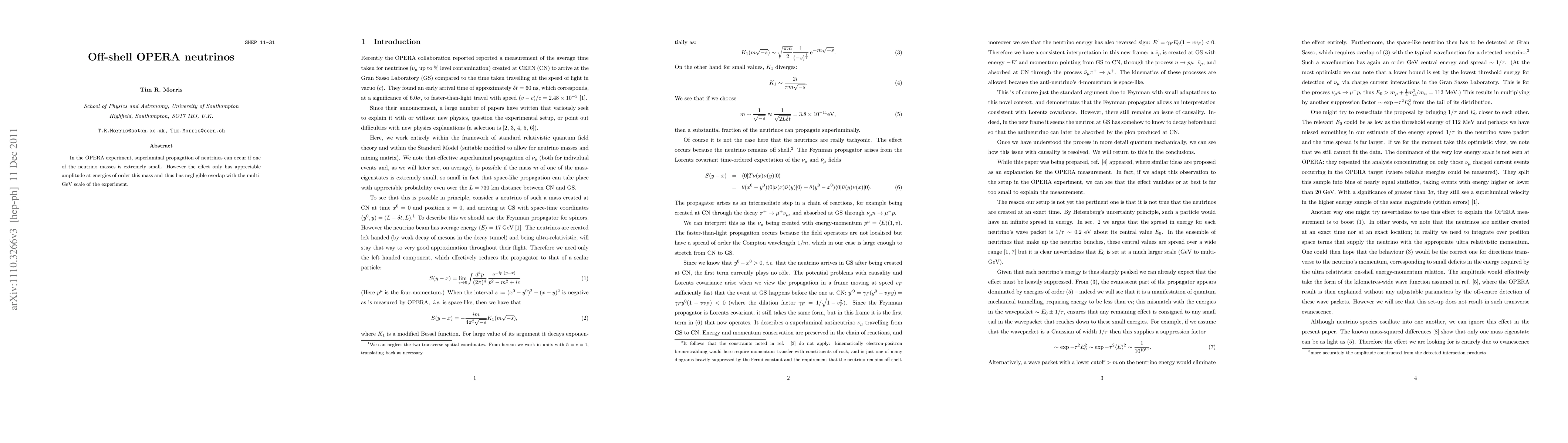 In the OPERA experiment, superluminal propagation of neutrinos can occur if one of the neutrino masses is extremely small. However the effect only has appreciable amplitude at energies of order this mass and thus has negligible overlap with the multi-GeV scale of the experiment.