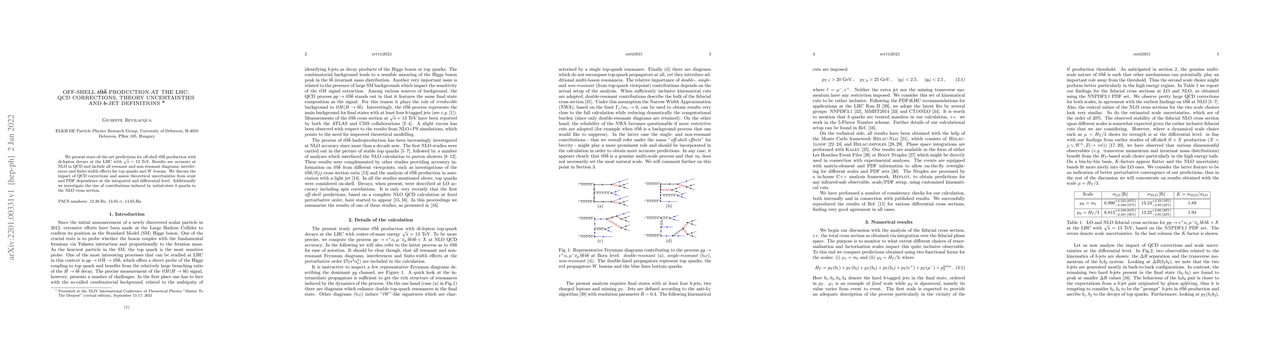 This paper provides precise predictions for off-shell $t\bar{t}b\bar{b}$ production at the LHC with NLO QCD corrections, including all relevant diagrams and interferences. It also evaluates theoretical uncertainties and examines the impact of initial-state $b$-jet definitions.