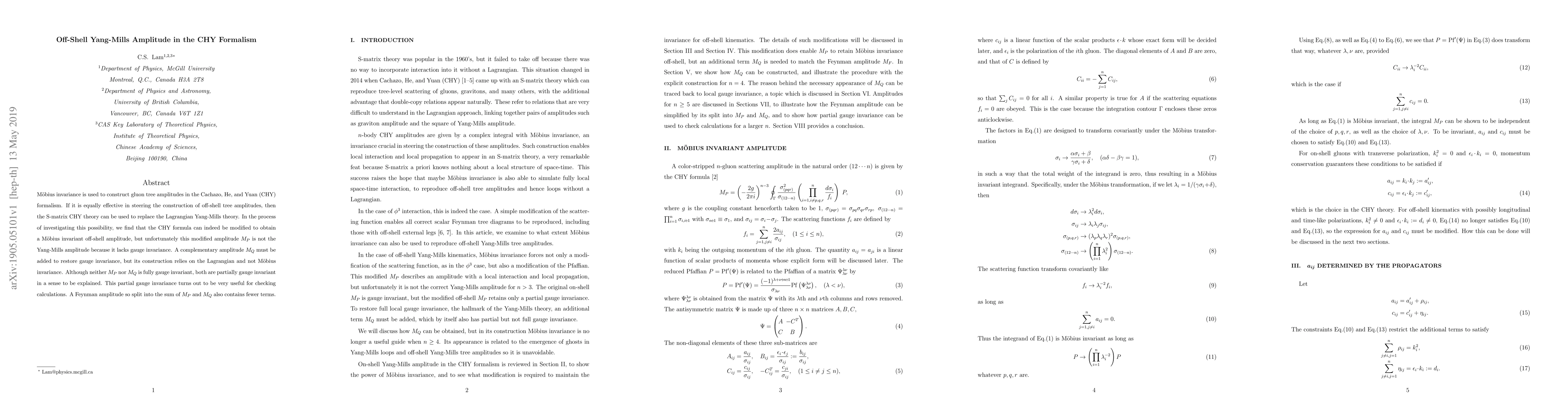 M\"obius invariance is used to construct gluon tree amplitudes in the Cachazo, He, and Yuan (CHY) formalism. If it is equally effective in steering the construction of off-shell tree amplitudes, then the S-matrix CHY theory can be used to replace the Lagrangian Yang-Mills theory. In the process of investigating this possibility, we find that the CHY formula can indeed be modified to obtain a M\"obius invariant off-shell amplitude, but unfortunately this modified amplitude $M_P$ is not the Yang-Mills amplitude because it lacks gauge invariance. A complementary amplitude $M_Q$ must be added to restore gauge invariance, but its construction relies on the Lagrangian and not M\"obius invariance. Although neither $M_P$ nor $M_Q$ is fully gauge invariant, both are partially gauge invariant in a sense to be explained. This partial gauge invariance turns out to be very useful for checking calculations. A Feynman amplitude so split into the sum of $M_P$ and $M_Q$ also contains fewer terms.