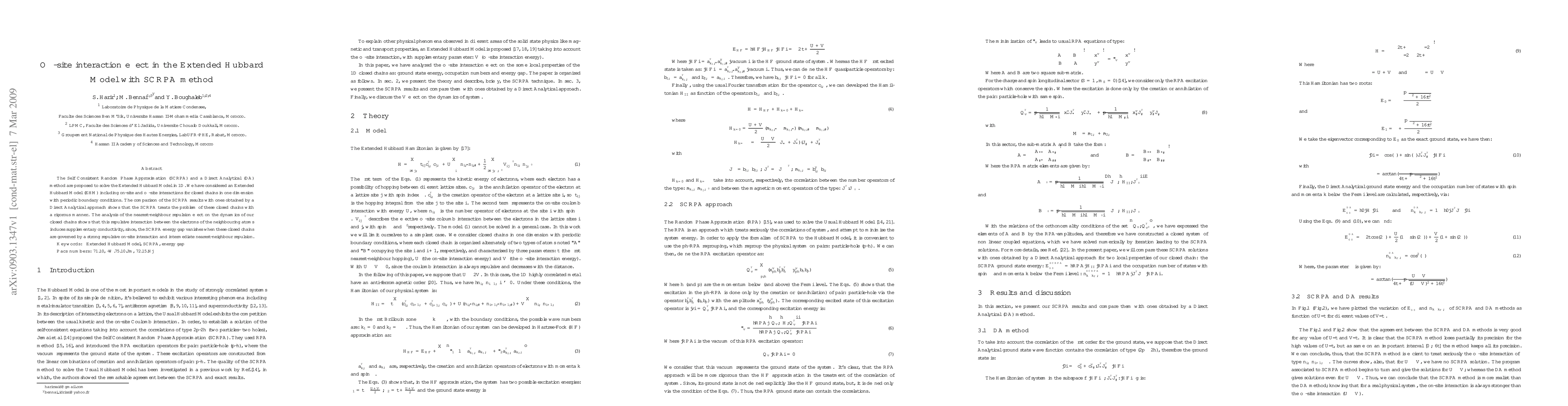 The Self Consistent Random Phase Approximation (SCRPA) and a Direct Analytical (DA) method are proposed to solve the Extended Hubbard Model in 1D. We have considered an Extended Hubbard Model (EHM) including on-site and off-site interactions for closed chains in one dimension with periodic boundary conditions. The comparison of the SCRPA results with ones obtained by a Direct Analytical approach shows that the SCRPA treats the problem of these closed chains with a rigorous manner. The analysis of the nearest-neighbour repulsion effect on the dynamics of our closed chains shows that this repulsive interaction between the electrons of the neighbouring atoms induces supplementary conductivity, since, the SCRPA energy gap vanishes when these closed chains are governed by a strong repulsive on-site interaction and intermediate nearest-neighbour repulsion.
