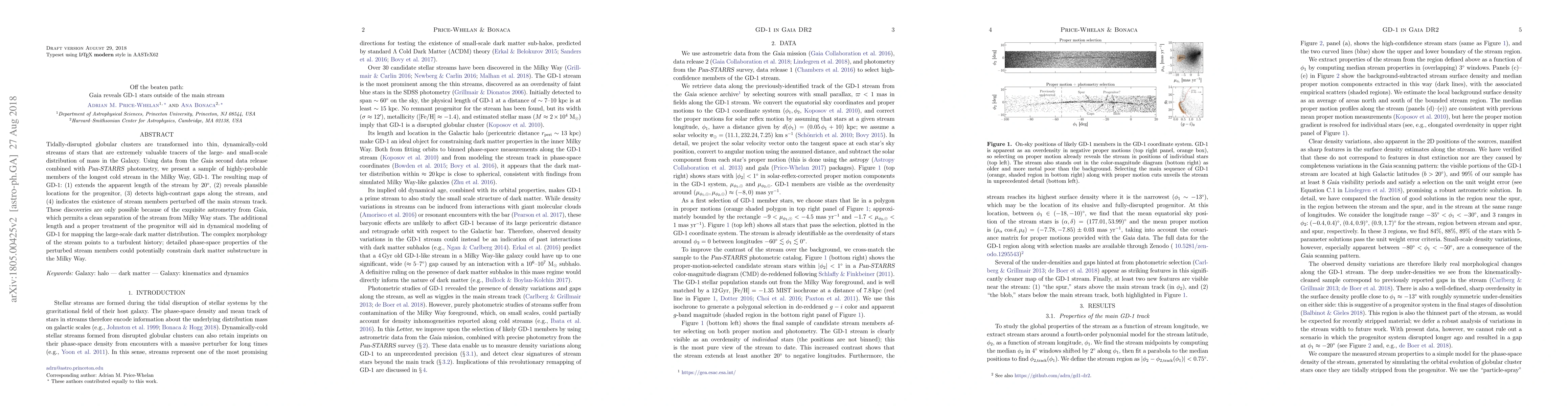 This paper uses Gaia and Pan-STARRS data to study the GD-1 stream, revealing its extended length, progenitor locations, and gaps, and identifying perturbed members. The findings enhance dynamical modeling for mapping dark matter distribution and suggest the stream's complex history may constrain dark matter substructure.