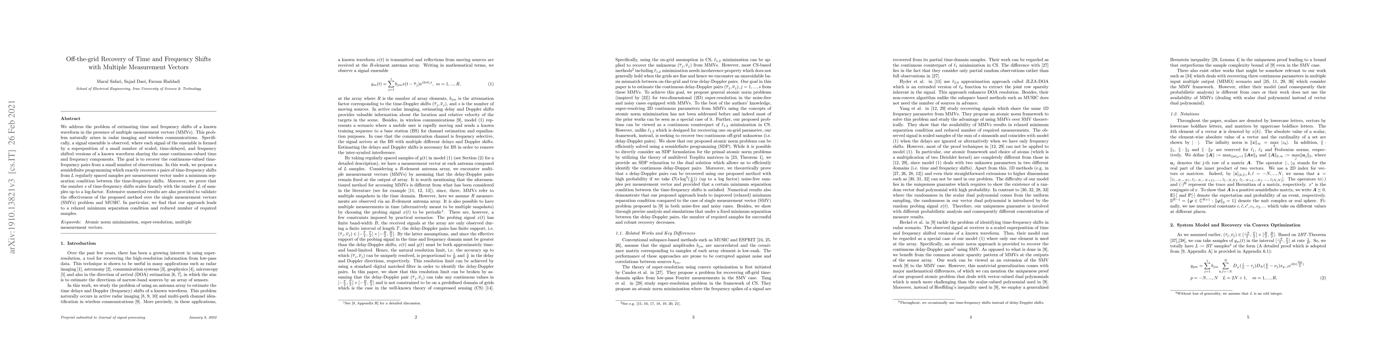 Researchers propose a method to recover time-frequency shifts from multiple measurement vectors, reducing required samples and relaxation of minimum separation conditions in radar imaging and wireless communications applications.