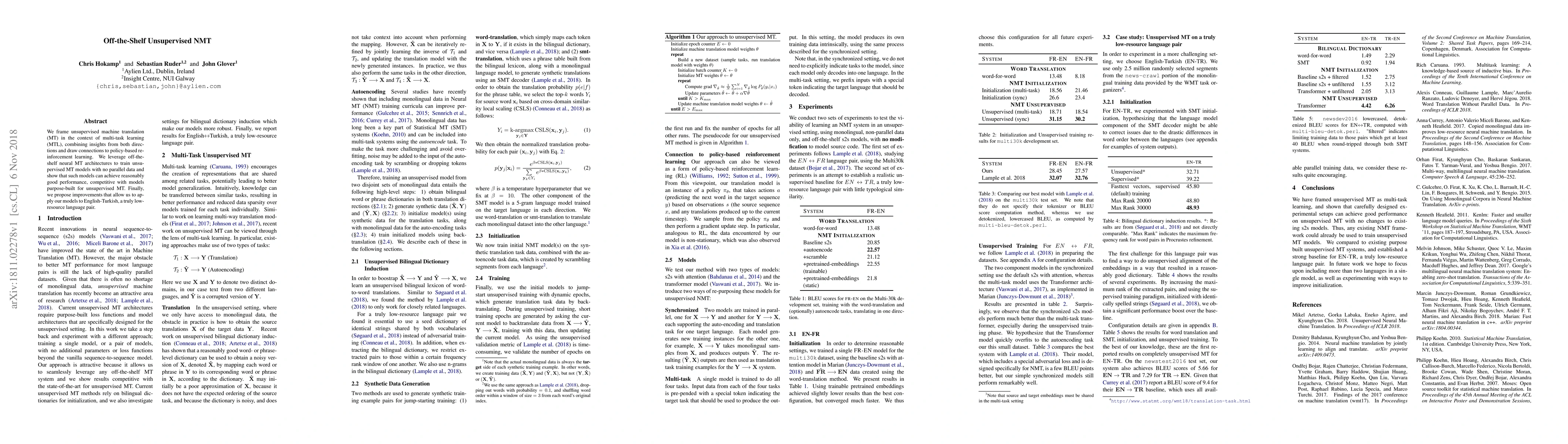 Researchers show that off-the-shelf neural machine translation models can achieve good performance in unsupervised machine translation tasks, often comparable to models designed specifically for these tasks. The study also proposes improvements for low-resource languages like English-Turkish.