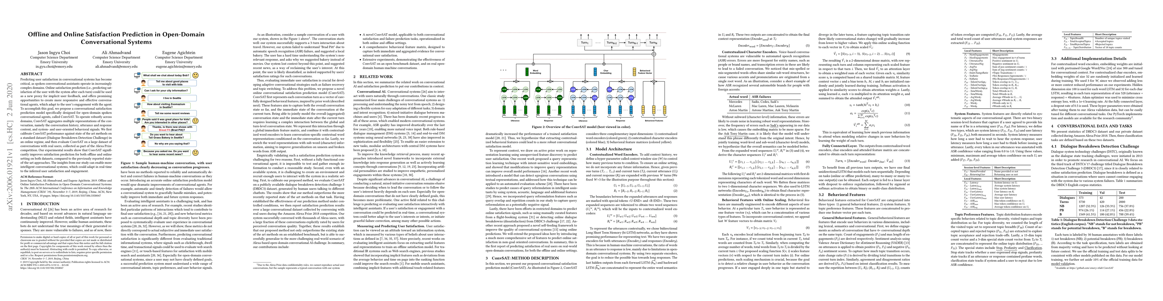 This paper proposes ConvSAT, a model for predicting user satisfaction in open-domain conversational systems, both online and offline. ConvSAT aggregates diverse conversation representations to improve prediction accuracy, outperforming existing methods on standard and real-user datasets.