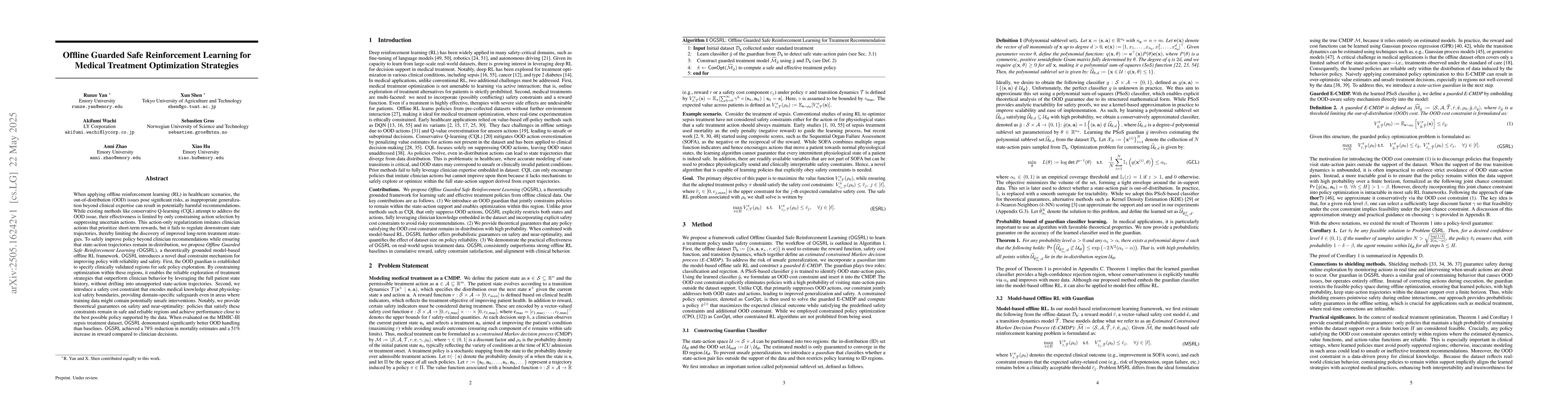 Offline Guarded Safe Reinforcement Learning proposes a framework to improve medical treatment policies without drifting into unsafe state-action trajectories, ensuring reliability and safety while outperforming clinician behavior.