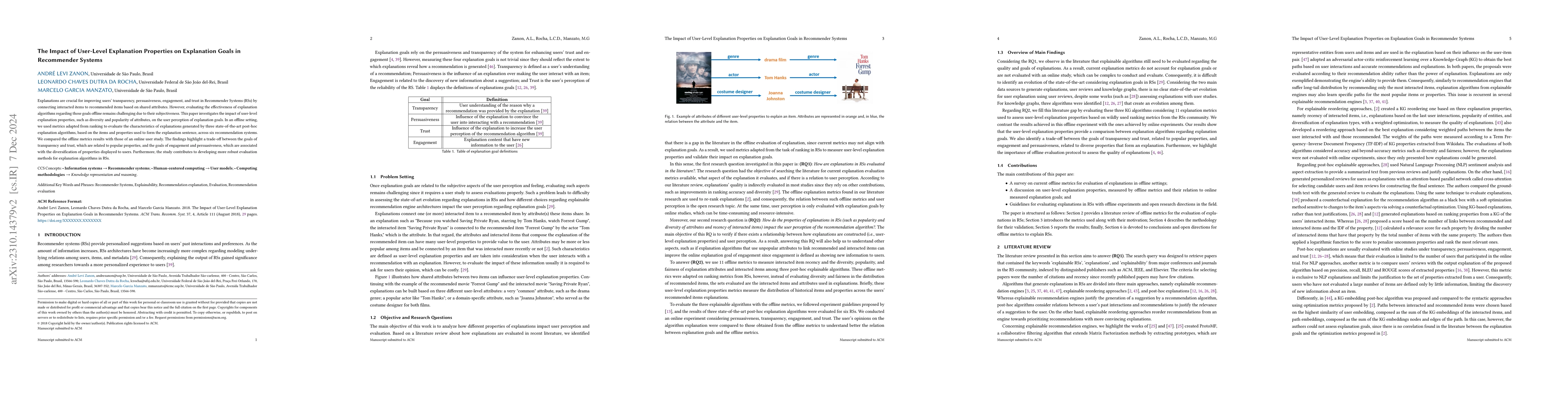 Explanations are crucial for improving users' transparency, persuasiveness, engagement, and trust in Recommender Systems (RSs). However, evaluating the effectiveness of explanation algorithms regarding those goals remains challenging due to existing offline metrics' limitations. This paper introduces new metrics for the evaluation and validation of explanation algorithms based on the items and properties used to form the sentence of an explanation. Towards validating the metrics, the results of three state-of-the-art post-hoc explanation algorithms were evaluated for six RSs, comparing the offline metrics results with those of an online user study. The findings show the proposed offline metrics can effectively measure the performance of explanation algorithms and highlight a trade-off between the goals of transparency and trust, which are related to popular properties, and the goals of engagement and persuasiveness, which are associated with the diversification of properties displayed to users. Furthermore, the study contributes to the development of more robust evaluation methods for explanation algorithms in RSs.