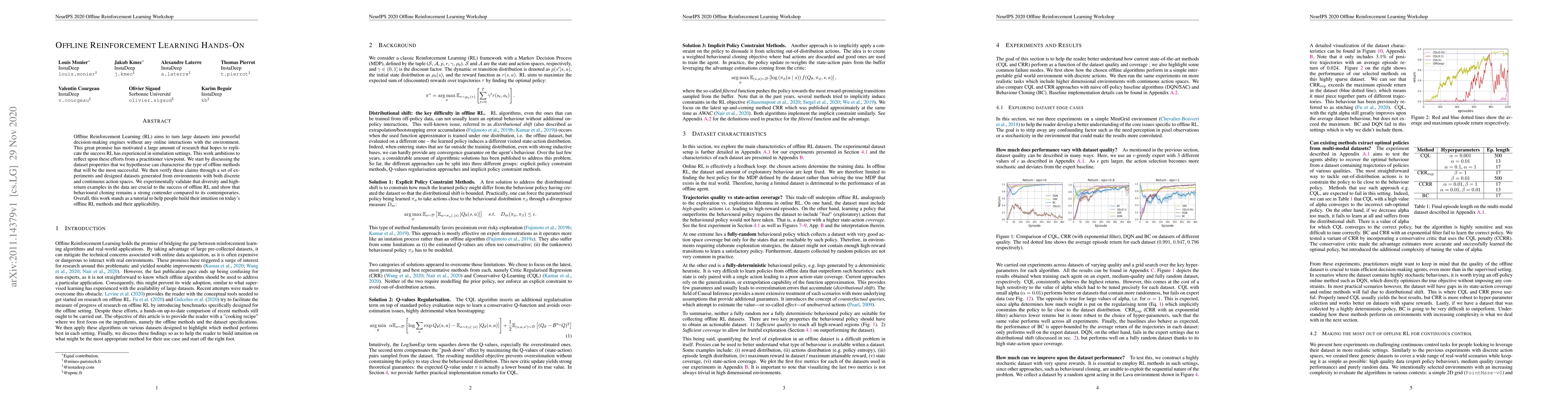 Offline Reinforcement Learning (RL) aims to turn large datasets into powerful decision-making engines without any online interactions with the environment. This great promise has motivated a large amount of research that hopes to replicate the success RL has experienced in simulation settings. This work ambitions to reflect upon these efforts from a practitioner viewpoint. We start by discussing the dataset properties that we hypothesise can characterise the type of offline methods that will be the most successful. We then verify these claims through a set of experiments and designed datasets generated from environments with both discrete and continuous action spaces. We experimentally validate that diversity and high-return examples in the data are crucial to the success of offline RL and show that behavioural cloning remains a strong contender compared to its contemporaries. Overall, this work stands as a tutorial to help people build their intuition on today's offline RL methods and their applicability.