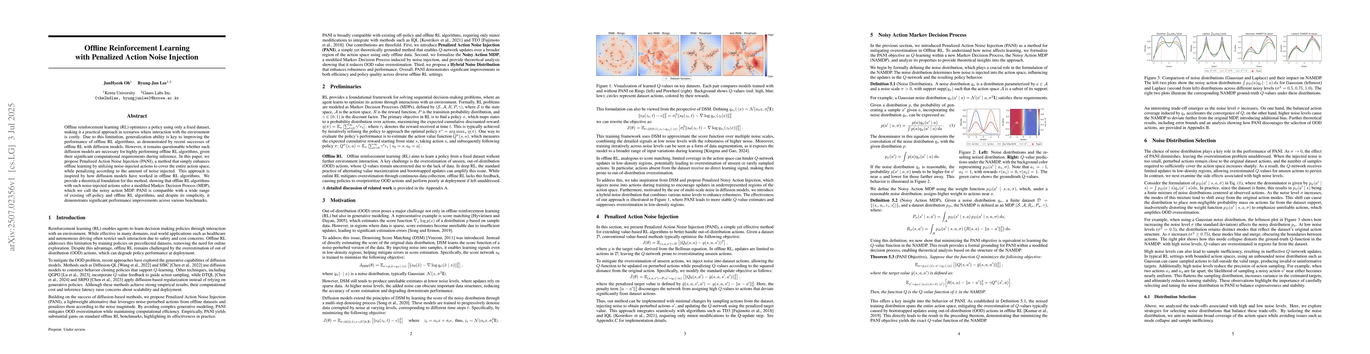 Offline reinforcement learning (RL) optimizes a policy using only a fixed dataset, making it a practical approach in scenarios where interaction with the environment is costly. Due to this limitation, generalization ability is key to improving the performance of offline RL algorithms, as demonstrated by recent successes of offline RL with diffusion models. However, it remains questionable whether such diffusion models are necessary for highly performing offline RL algorithms, given their significant computational requirements during inference. In this paper, we propose Penalized Action Noise Injection (PANI), a method that simply enhances offline learning by utilizing noise-injected actions to cover the entire action space, while penalizing according to the amount of noise injected. This approach is inspired by how diffusion models have worked in offline RL algorithms. We provide a theoretical foundation for this method, showing that offline RL algorithms with such noise-injected actions solve a modified Markov Decision Process (MDP), which we call the noisy action MDP. PANI is compatible with a wide range of existing off-policy and offline RL algorithms, and despite its simplicity, it demonstrates significant performance improvements across various benchmarks.