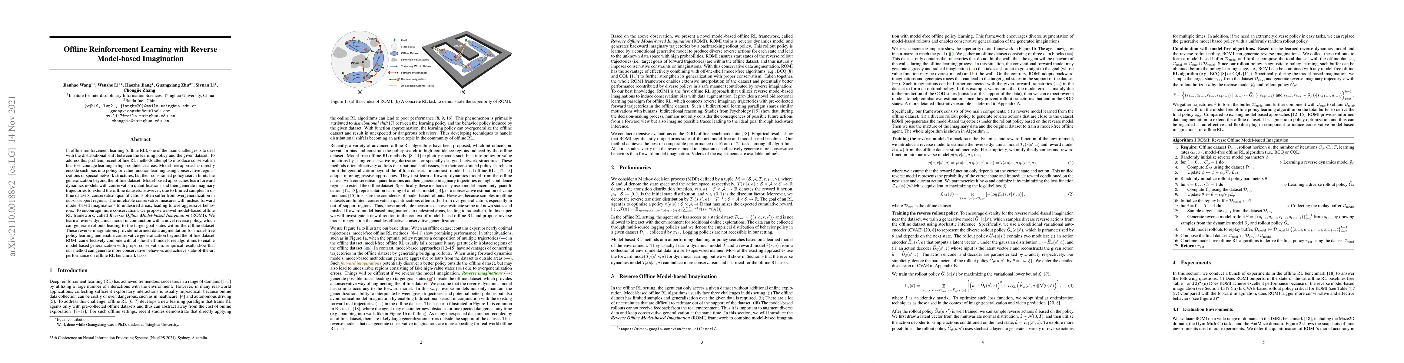 The paper proposes a novel offline reinforcement learning framework called Reverse Offline Model-based Imagination (ROMI) that combines reverse dynamics modeling with a reverse policy to generate goal-oriented rollouts, enhancing data augmentation and enabling conservative generalization beyond the offline dataset. ROMI achieves state-of-the-art performance by effectively integrating model-free policy learning with model-based imagination.