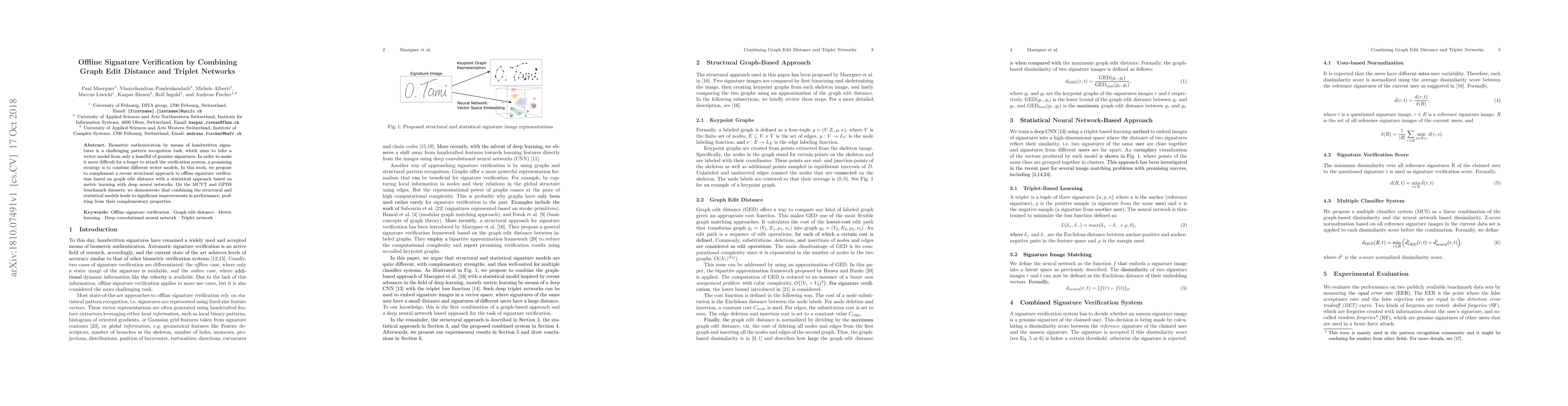 This paper proposes an offline signature verification method that combines graph edit distance for structural analysis with triplet networks for statistical modeling, achieving significant performance improvements on benchmark datasets by leveraging the complementary strengths of both approaches.