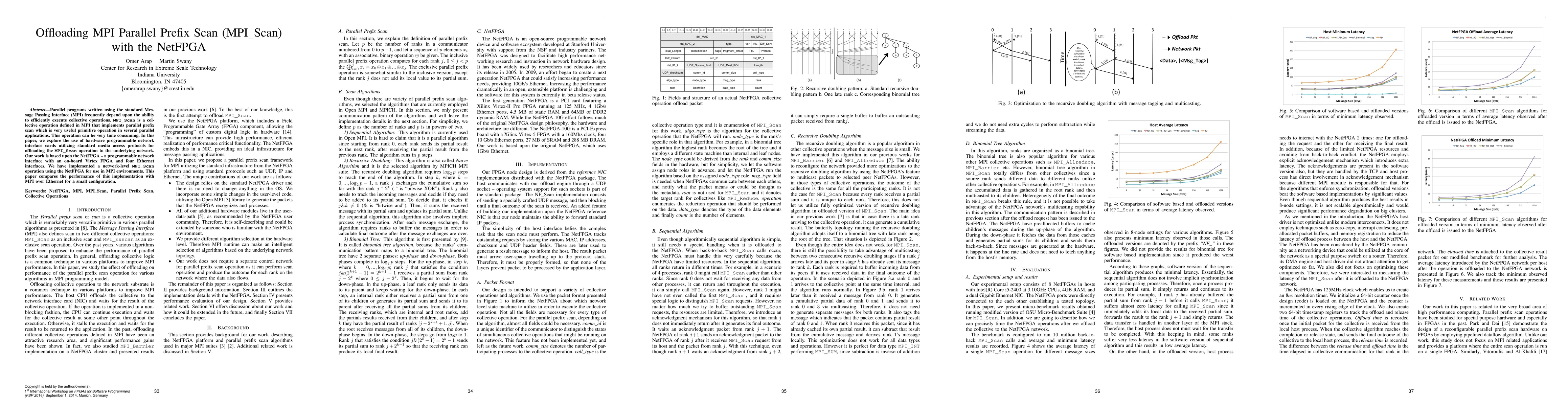 This paper investigates offloading the MPI_Scan operation to a programmable network interface card (NetFPGA) to enhance performance. The study implements a network-level MPI_Scan using the NetFPGA and compares its efficiency against traditional MPI over Ethernet in small configurations.
