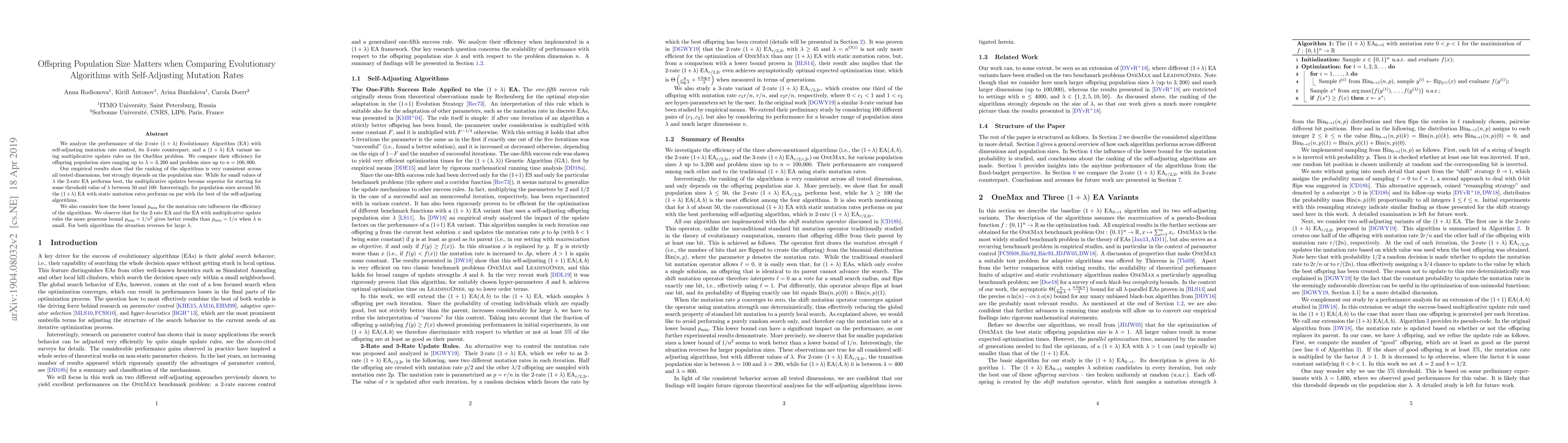 This paper compares the performance of various evolutionary algorithms (EAs) with self-adjusting mutation rates on the OneMax problem, finding that the ranking of the algorithms is consistent but highly dependent on offspring population size. The 2-rate EA outperforms for small population sizes, while multiplicative updates become superior for larger sizes.
