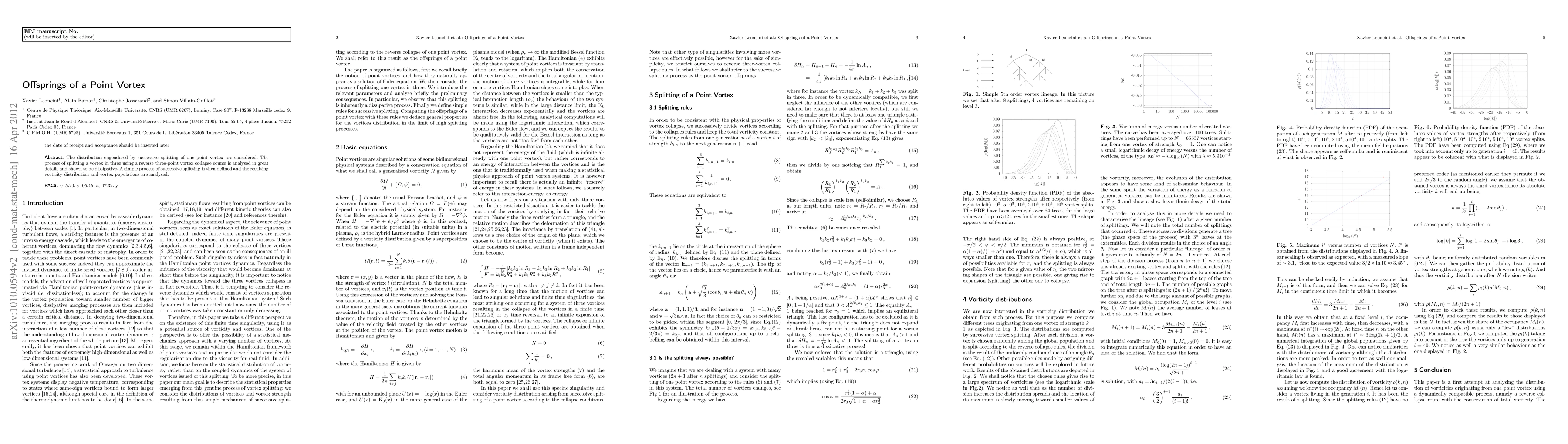 The distribution engendered by successive splitting of one point vortex are considered. The process of splitting a vortex in three using a reverse three-point vortex collapse course is analysed in great details and shown to be dissipative. A simple process of successive splitting is then defined and the resulting vorticity distribution and vortex populations are analysed.