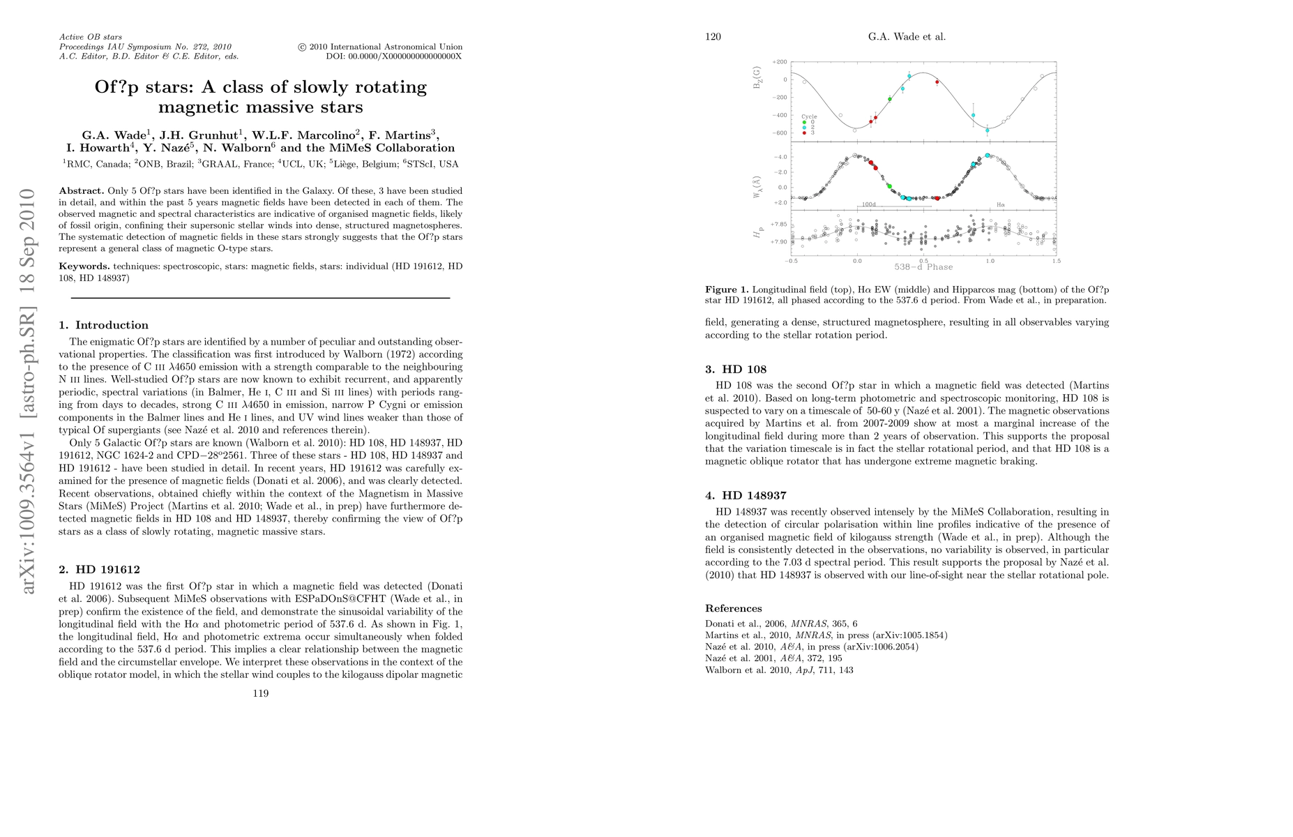 Only 5 Of?p stars have been identified in the Galaxy. Of these, 3 have been studied in detail, and within the past 5 years magnetic fields have been detected in each of them. The observed magnetic and spectral characteristics are indicative of organised magnetic fields, likely of fossil origin, confining their supersonic stellar winds into dense, structured magnetospheres. The systematic detection of magnetic fields in these stars strongly suggests that the Of?p stars represent a general class of magnetic O-type stars.