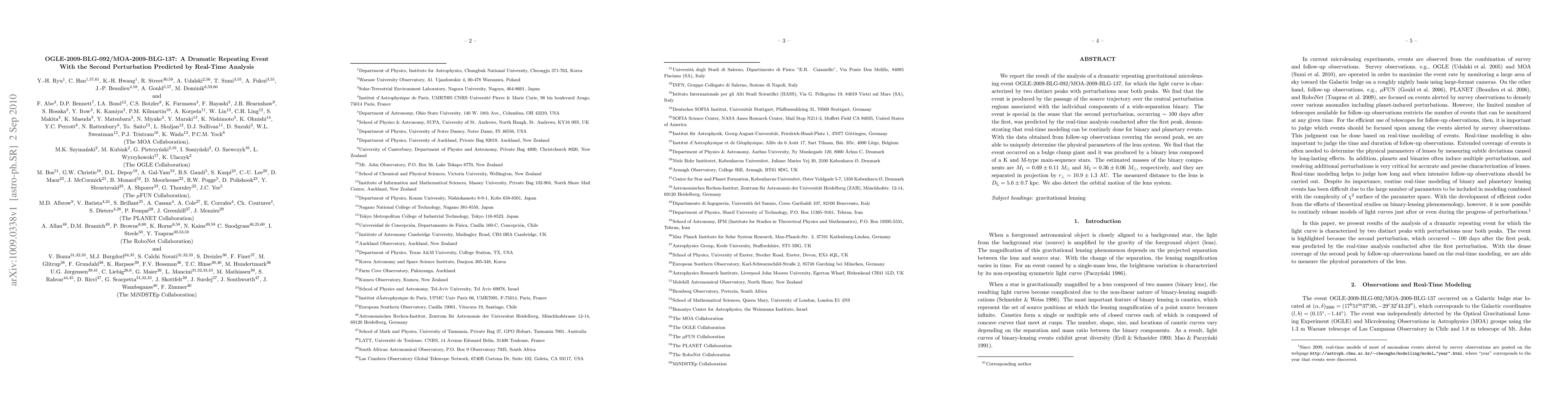 We report the result of the analysis of a dramatic repeating gravitational microlensing event OGLE-2009-BLG-092/MOA-2009-BLG-137, for which the light curve is characterized by two distinct peaks with perturbations near both peaks. We find that the event is produced by the passage of the source trajectory over the central perturbation regions associated with the individual components of a wide-separation binary. The event is special in the sense that the second perturbation, occurring $\sim 100$ days after the first, was predicted by the real-time analysis conducted after the first peak, demonstrating that real-time modeling can be routinely done for binary and planetary events. With the data obtained from follow-up observations covering the second peak, we are able to uniquely determine the physical parameters of the lens system. We find that the event occurred on a bulge clump giant and it was produced by a binary lens composed of a K and M-type main-sequence stars. The estimated masses of the binary components are $M_1=0.69 \pm 0.11\ M_\odot$ and $M_2=0.36\pm 0.06\ M_\odot$, respectively, and they are separated in projection by $r_\perp=10.9\pm 1.3\ {\rm AU}$. The measured distance to the lens is $D_{\rm L}=5.6 \pm 0.7\ {\rm kpc}$. We also detect the orbital motion of the lens system.