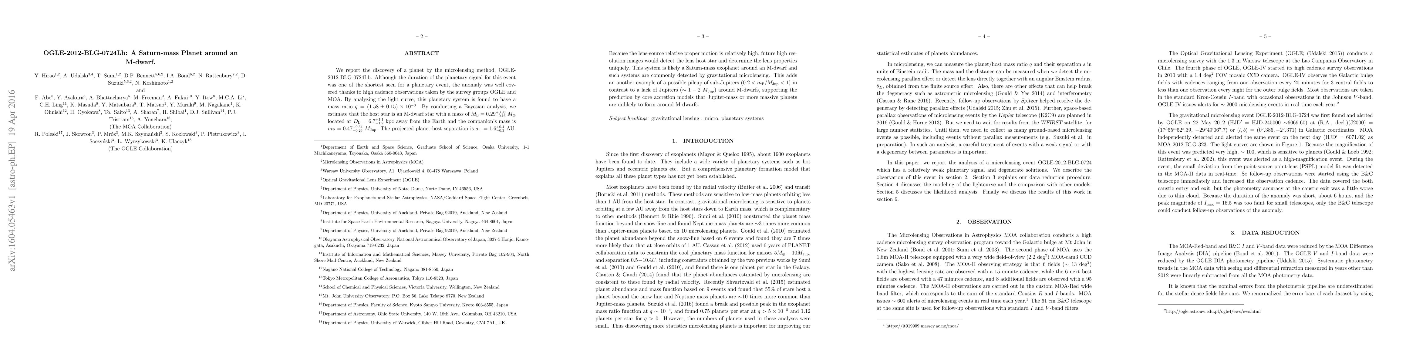 The paper reports the discovery of OGLE-2012-BLG-0724Lb, a Saturn-mass planet orbiting an M-dwarf star, detected via microlensing with high-cadence observations. The planet's mass is estimated to be around 0.47 Jupiter masses, supporting the theory that sub-Jupiters are more common than Jupiter-mass planets around M-dwarfs.
