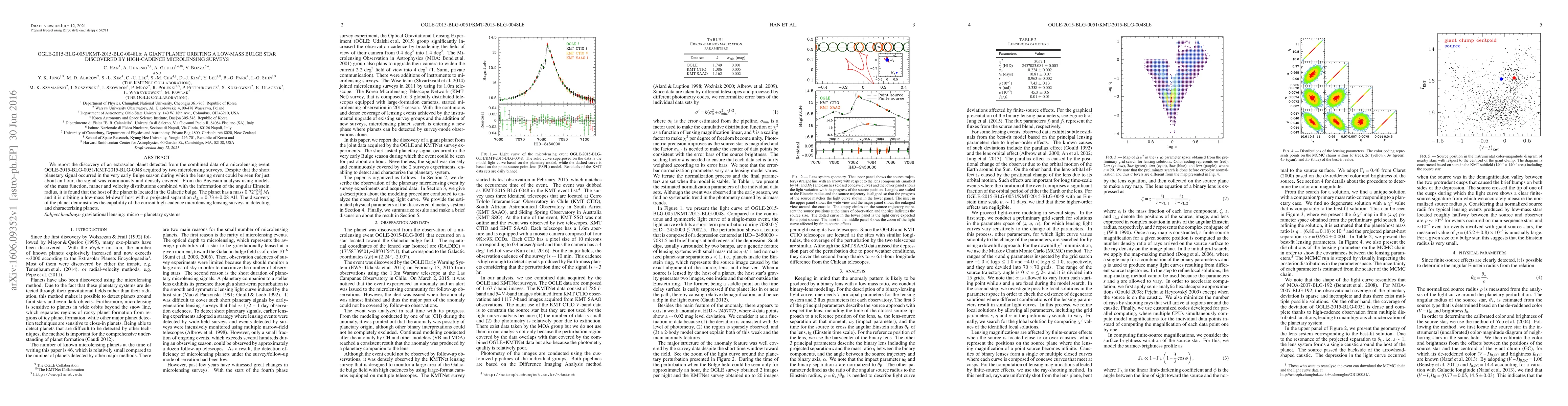 The paper reports the discovery of an extrasolar planet, OGLE-2015-BLG-0051/KMT-2015-BLG-0048Lb, detected via high-cadence microlensing surveys. The planet, with a mass of $0.72_{-0.07}^{+0.65}\ M_{\rm J}$, orbits a low-mass M-dwarf star in the Galactic bulge.