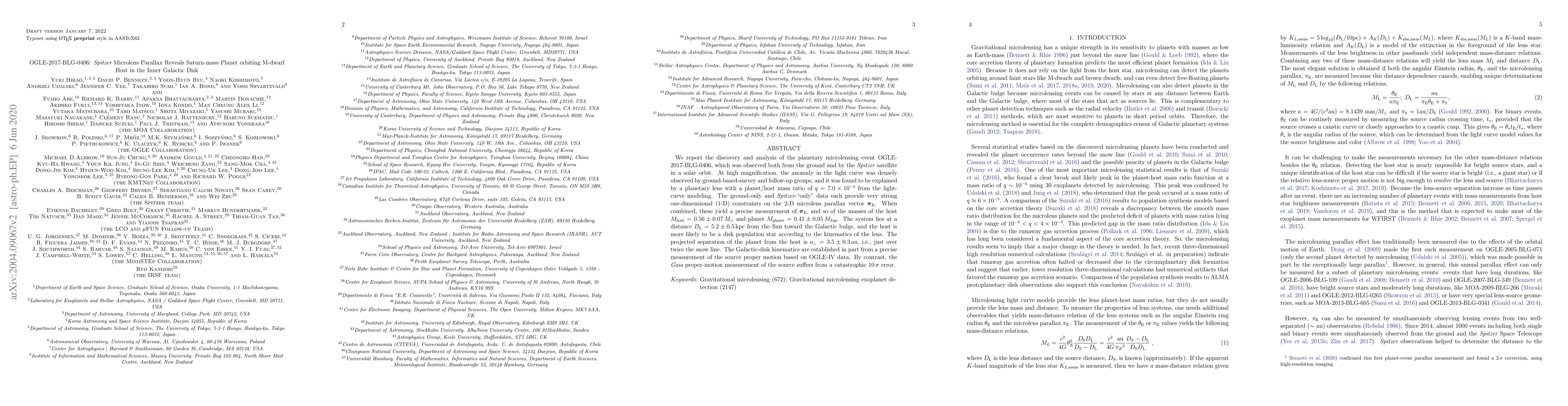 The research paper reports the discovery of a Saturn-mass planet orbiting an M-dwarf star in the Galactic disk, identified through microlensing event OGLE-2017-BLG-0406. Combining data from the Spitzer satellite and ground observations, the study precisely determines the planet's mass and the host star's mass, revealing a system located 5.2 kpc from Earth.