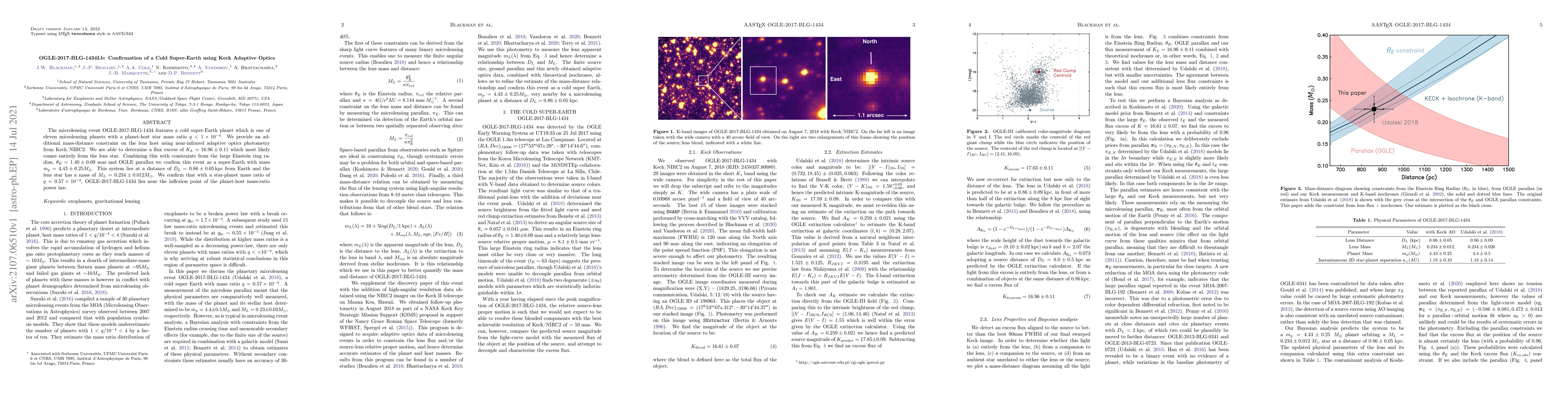 The microlensing event OGLE-2017-BLG-1434Lb confirms a cold super-Earth with a mass of $4.43 \pm 0.25M_\odot$ using Keck/NIRC2 adaptive optics, placing it near the inflexion point of the planet-host mass-ratio power law. The system is located $0.86 \pm 0.05$ kpc away with a star-planet mass ratio of $q=0.57 \times 10^{-4}$.