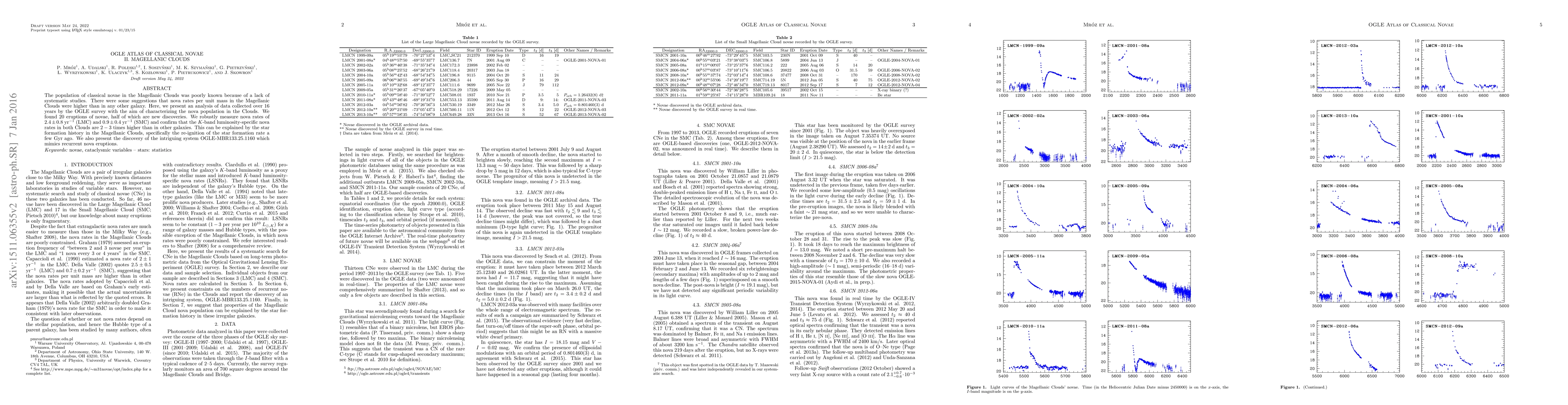 The population of classical novae in the Magellanic Clouds was poorly known because of a lack of systematic studies. There were some suggestions that nova rates per unit mass in the Magellanic Clouds were higher than in any other galaxy. Here, we present an analysis of data collected over 16 years by the OGLE survey with the aim of characterizing the nova population in the Clouds. We found 20 eruptions of novae, half of which are new discoveries. We robustly measure nova rates of $2.4 \pm 0.8$ yr$^{-1}$ (LMC) and $0.9 \pm 0.4$ yr$^{-1}$ (SMC) and confirm that the K-band luminosity-specific nova rates in both Clouds are 2-3 times higher than in other galaxies. This can be explained by the star formation history in the Magellanic Clouds, specifically the re-ignition of the star formation rate a few Gyr ago. We also present the discovery of the intriguing system OGLE-MBR133.25.1160 which mimics recurrent nova eruptions.