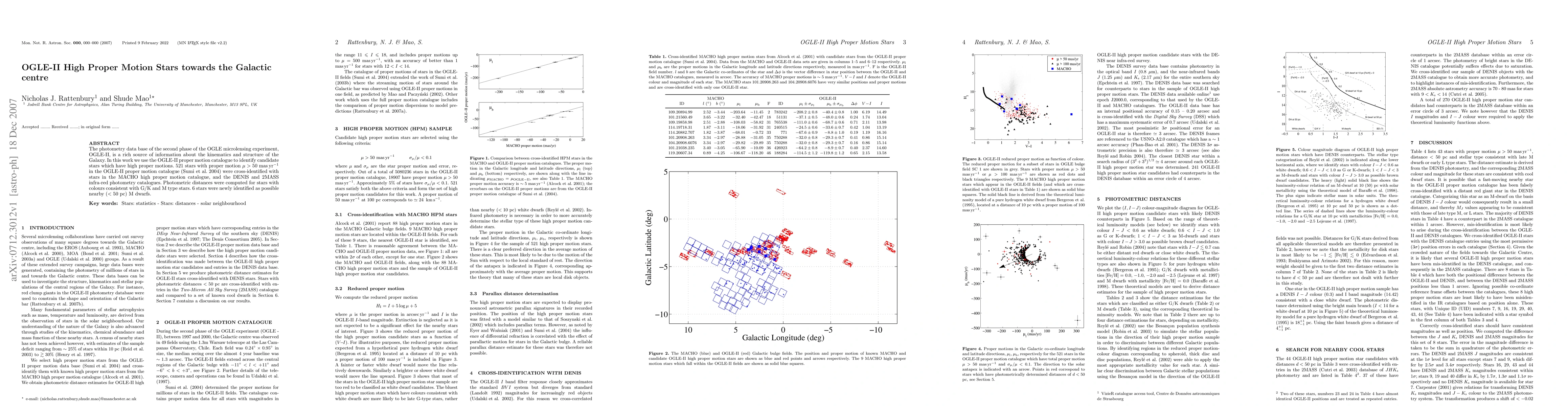 This paper utilizes the OGLE-II proper motion catalogue to identify 521 high proper motion stars, cross-referencing them with other catalogues to confirm their identities and compute photometric distances. Six nearby M dwarfs were newly identified, enhancing our understanding of the Galactic centre's stellar population.