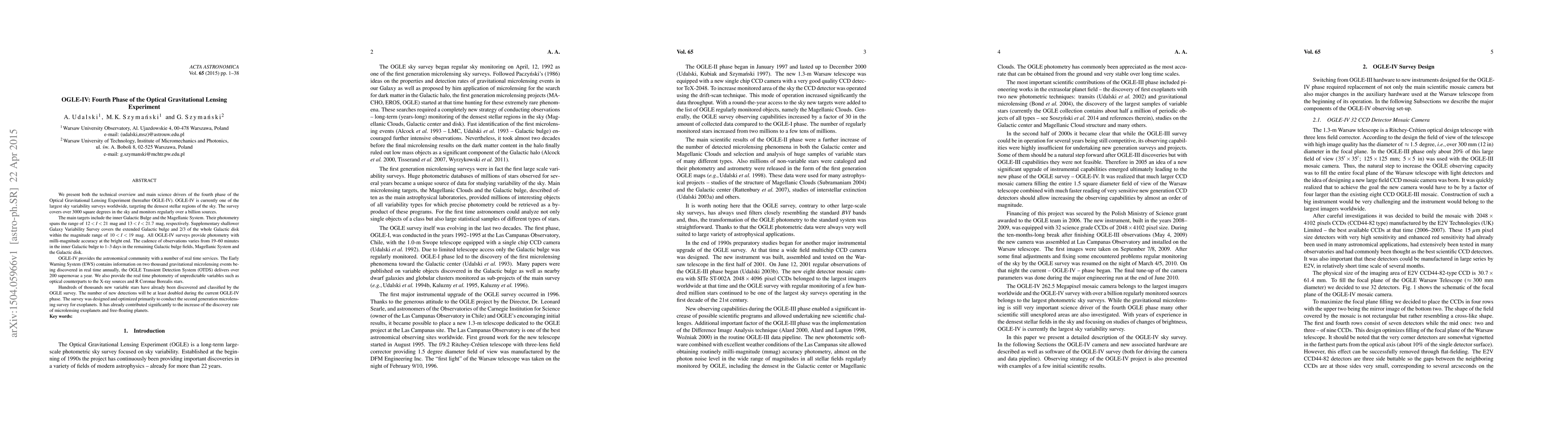 OGLE-IV is a comprehensive sky variability survey targeting the densest stellar regions, including the Galactic Bulge and the Magellanic System, with milli-magnitude accuracy. It aims to double the number of discovered variable stars and significantly enhance the detection rate of microlensing exoplanets.