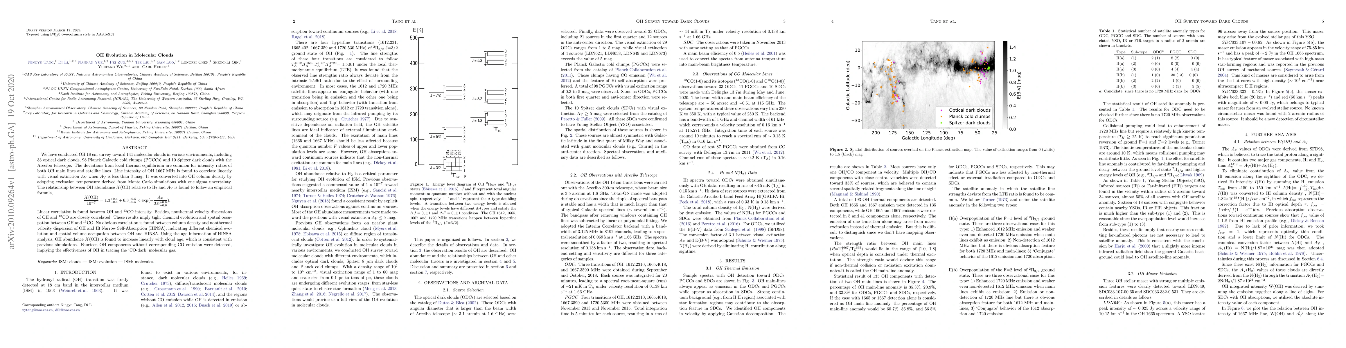 Researchers used the Arecibo telescope to study OH evolution in molecular clouds, finding a correlation between OH abundance and visual extinction, as well as linear relationships with CO and HI intensity.