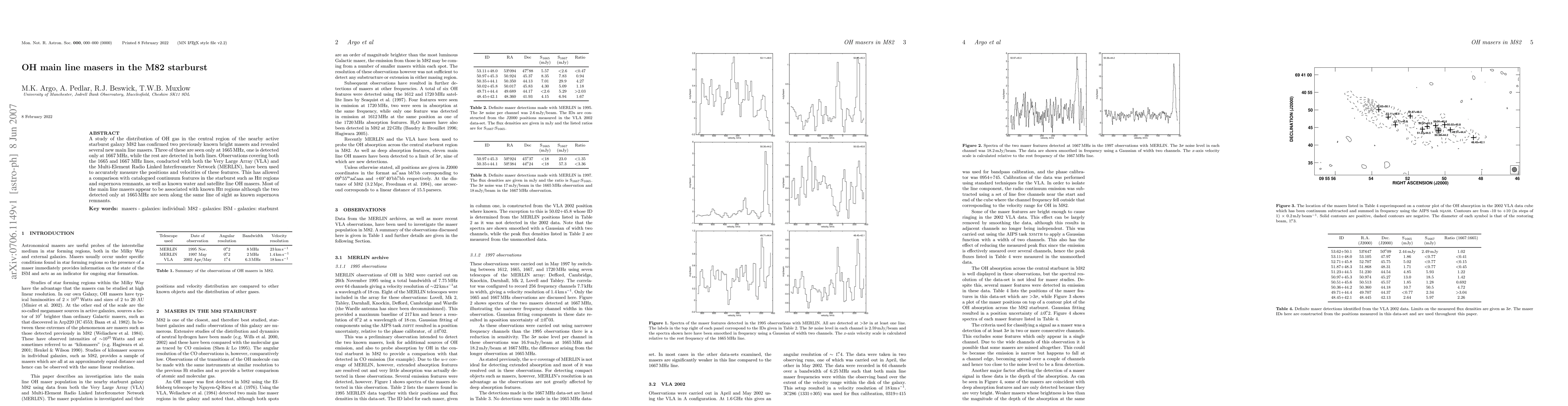 This study identifies and analyzes new OH main line masers in the central region of M82, confirming two known masers and discovering several new ones. Observations using VLA and MERLIN reveal their positions and velocities, showing most are linked to HII regions, while some align with supernova remnants.