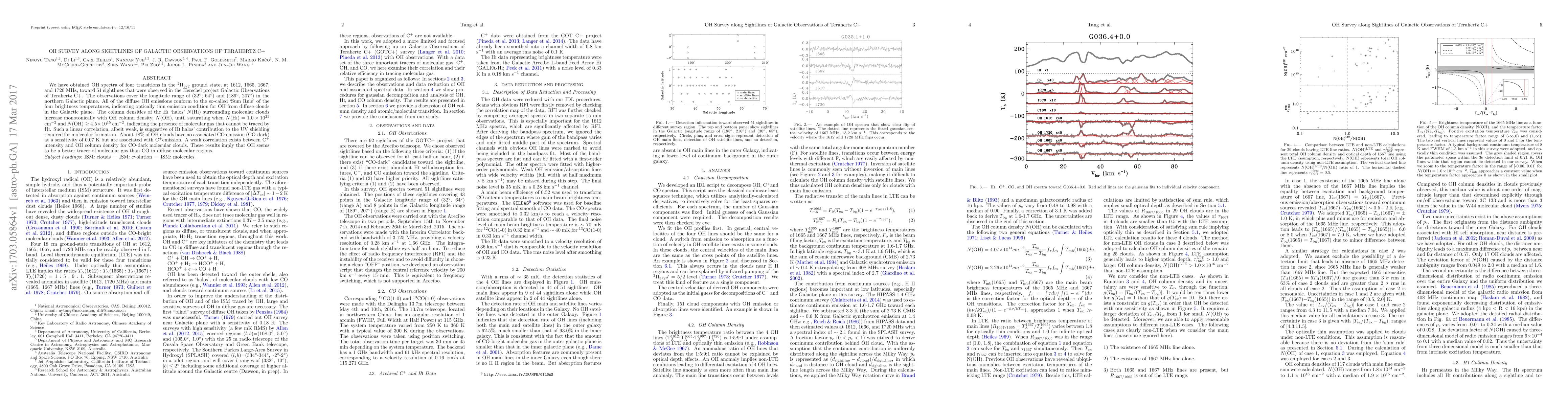 The research observes OH emissions along Galactic sightlines, confirming 'Sum Rule' for diffuse clouds indicating optically thin conditions. OH column densities correlate with HI halos, suggesting HI halos contribute to molecular formation shielding. 18% of OH clouds lack CO emission but are linked with C+ emission, implying OH traces diffuse molecular gas better than CO.