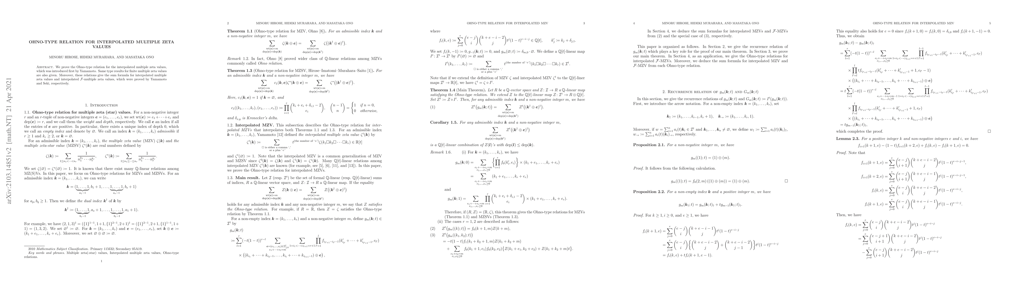 This paper proves an Ohno-type relation for interpolated multiple zeta values introduced by Yamamoto, also providing results for finite multiple zeta values. It additionally offers sum formulas for interpolated multiple zeta values and interpolated $\mathcal{F}$-multiple zeta values, previously established by Yamamoto and Seki.