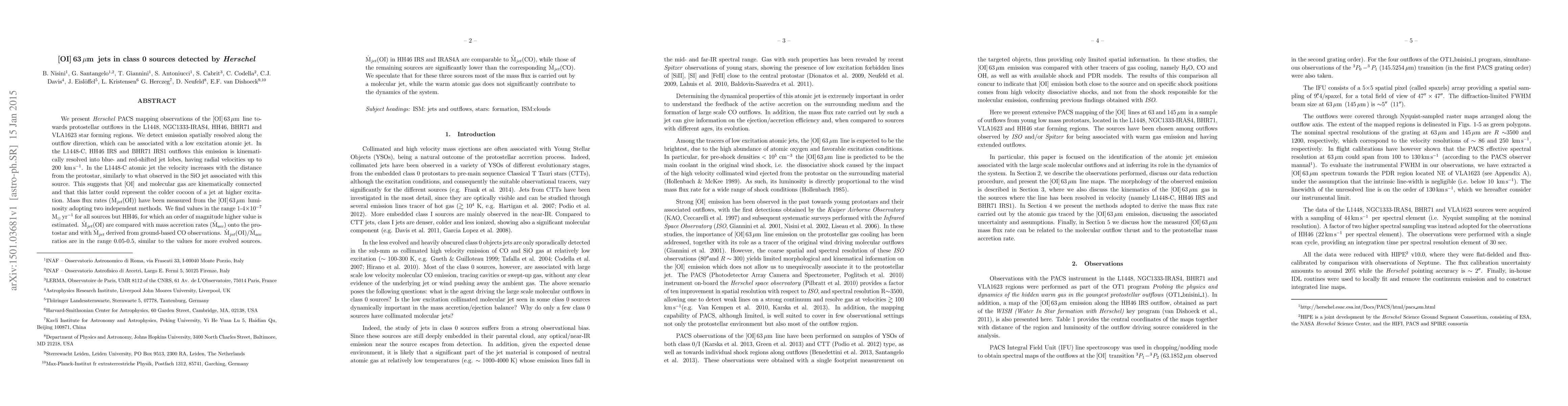 We present Herschel PACS mapping observations of the [OI]63 micron line towards protostellar outflows in the L1448, NGC1333-IRAS4, HH46, BHR71 and VLA1623 star forming regions. We detect emission spatially resolved along the outflow direction, which can be associated with a low excitation atomic jet. In the L1448-C, HH46 IRS and BHR71 IRS1 outflows this emission is kinematically resolved into blue- and red-shifted jet lobes, having radial velocities up to 200 km/s. In the L1448-C atomic jet the velocity increases with the distance from the protostar, similarly to what observed in the SiO jet associated with this source. This suggests that [OI] and molecular gas are kinematically connected and that this latter could represent the colder cocoon of a jet at higher excitation. Mass flux rates (\.M$_{jet}$(OI)) have been measured from the [OI]63micron luminosity adopting two independent methods. We find values in the range 1-4 10$^{-7}$ Mo/yr for all sources but HH46, for which an order of magnitude higher value is estimated. \.M$_{jet}$(OI) are compared with mass accretion rates (\.M$_{acc}$) onto the protostar and with \.M$_{jet}$ derived from ground-based CO observations. \.M$_{jet}$(OI)/\.M$_{acc}$ ratios are in the range 0.05-0.5, similar to the values for more evolved sources. \.M$_{jet}$(OI) in HH46 IRS and IRAS4A are comparable to \.M$_{jet}$(CO), while those of the remaining sources are significantly lower than the corresponding \.M$_{jet}$(CO). We speculate that for these three sources most of the mass flux is carried out by a molecular jet, while the warm atomic gas does not significantly contribute to the dynamics of the system.