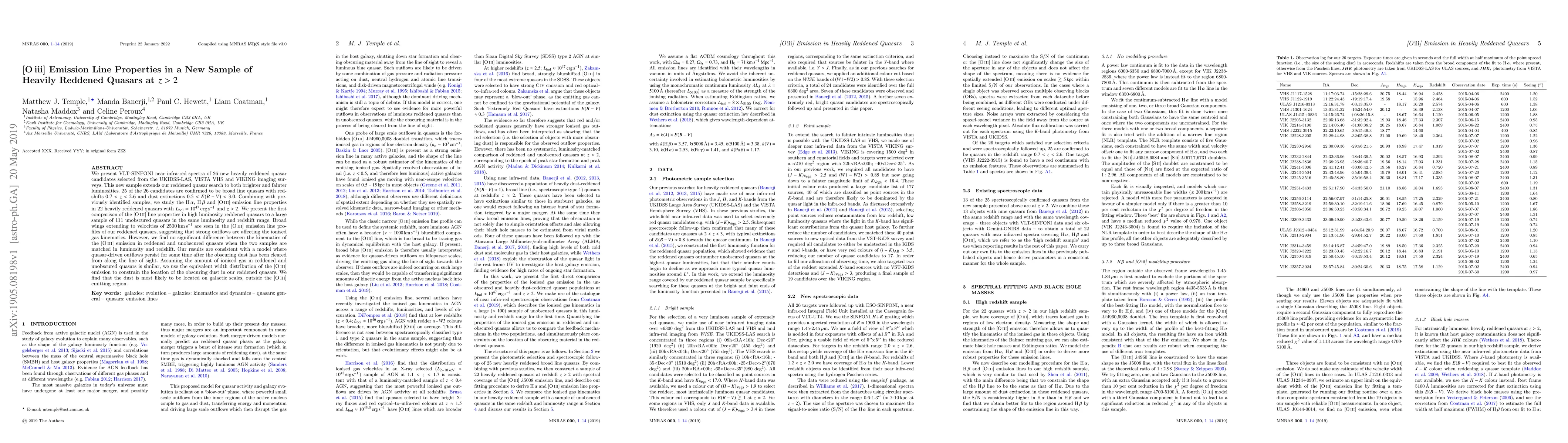 This study analyzes VLT-SINFONI spectra of 26 heavily reddened quasar candidates, confirming 25 as broad-line quasars with significant dust extinctions. The research compares [OIII] emission line properties in 22 high-luminosity, reddened quasars to 111 unobscured quasars, finding similar kinematics despite the obscuration, suggesting persistent outflows even after dust clears.