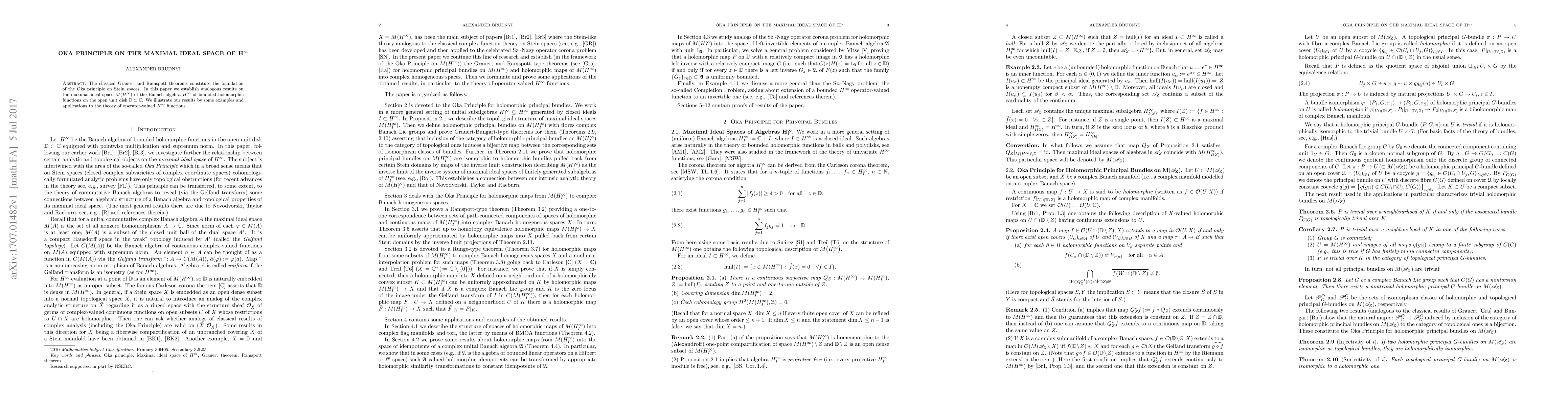 This paper extends the classical Oka principle to the maximal ideal space $M(H^\infty)$ of the Banach algebra $H^\infty$, providing analogous results to those on Stein spaces and illustrating them with examples and applications to operator-valued $H^\infty$ functions.