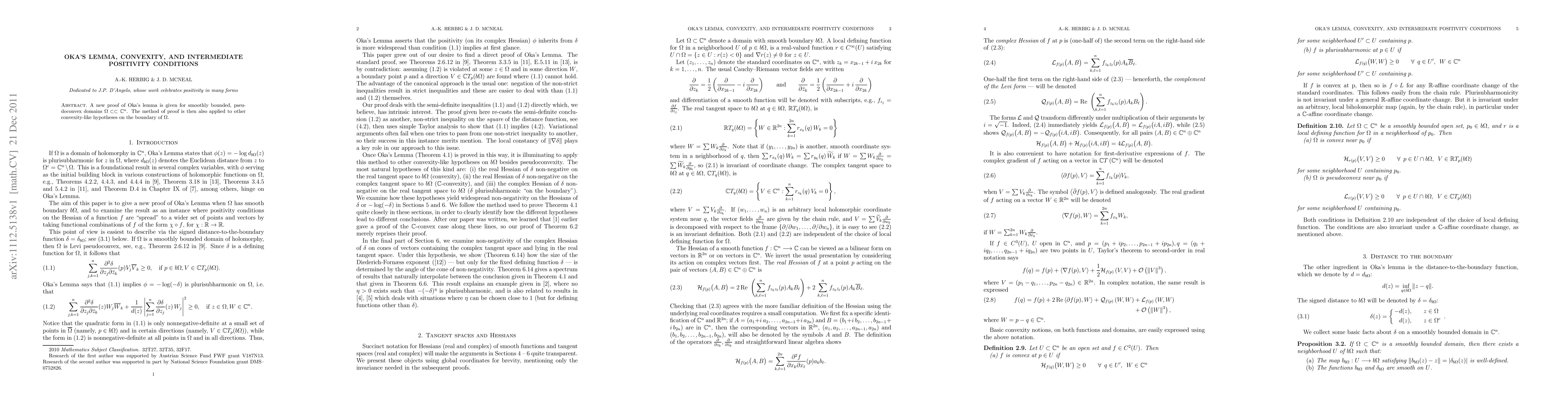 A new proof of Oka's lemma is given for smoothly bounded, pseudoconvex domains in complex space, with implications for convexity-like hypotheses on the domain's boundary.